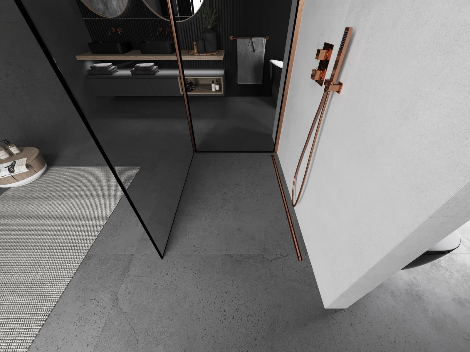 Mexen Kioto zuhanyfal Walk-in 130 x 100 cm, fekete keret, szálcsiszolt réz - 800-130-212-65-70-100