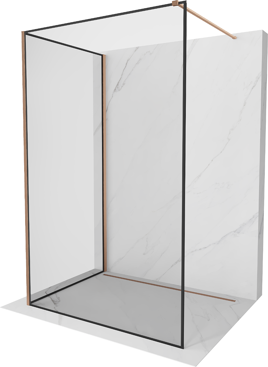 Mexen Kioto zuhanyfal Walk-in 110 x 110 cm, fekete keret, csiszolt réz - 800-110-212-65-70-110