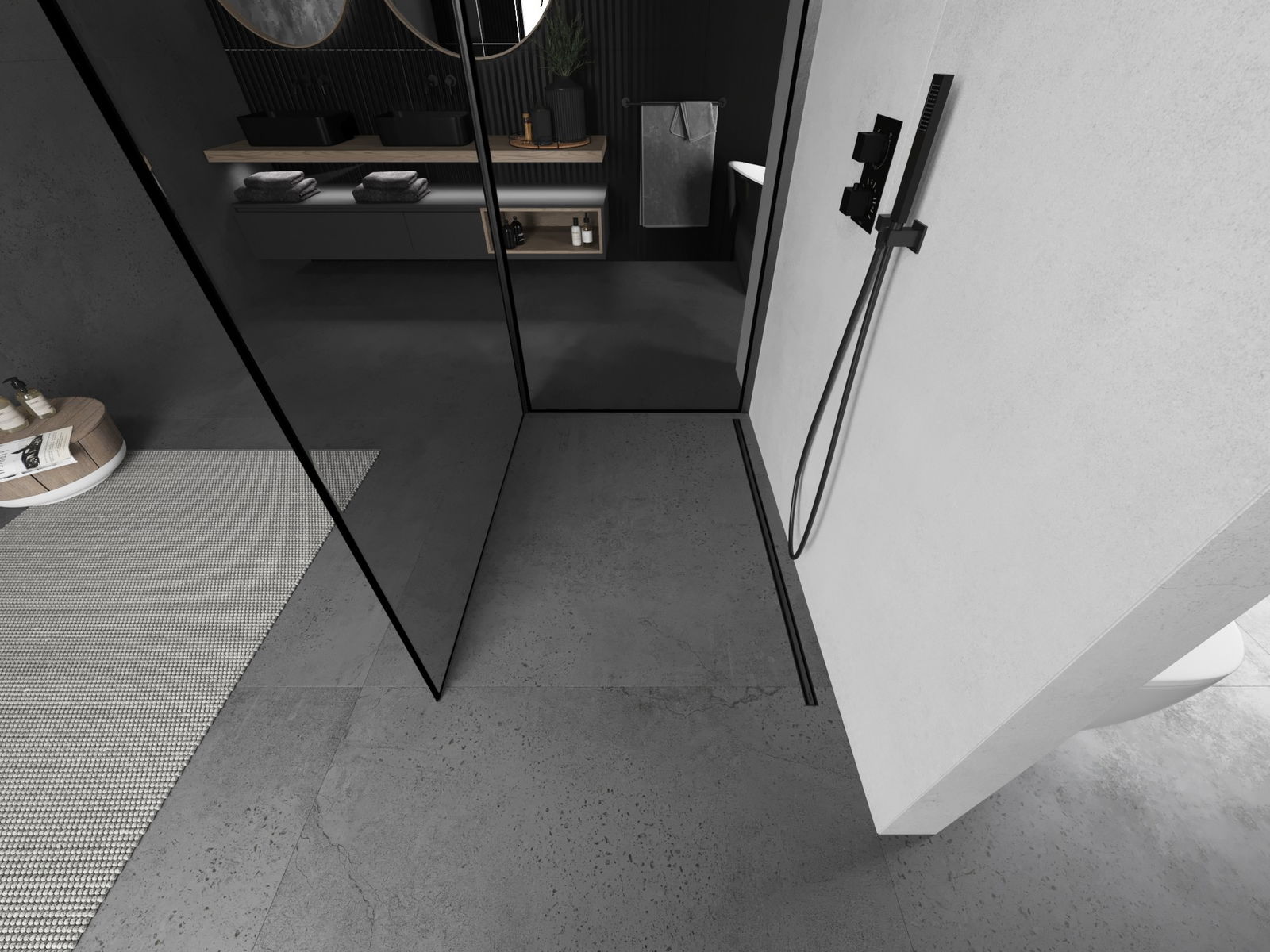 Mexen Kioto zuhanyfal Walk-in 130 x 70 cm, fekete keret, gun szürke kefélt - 800-130-212-66-70-070