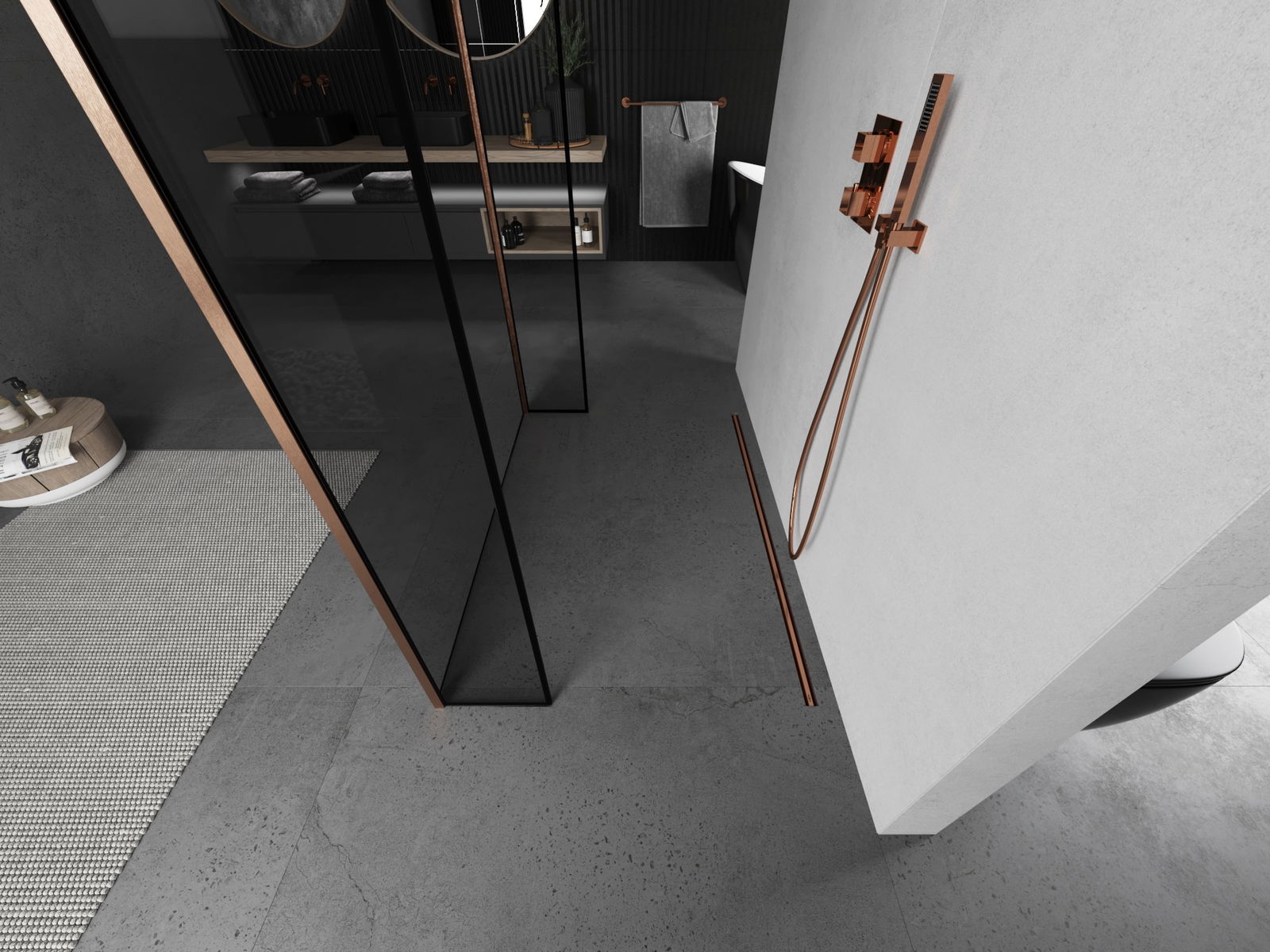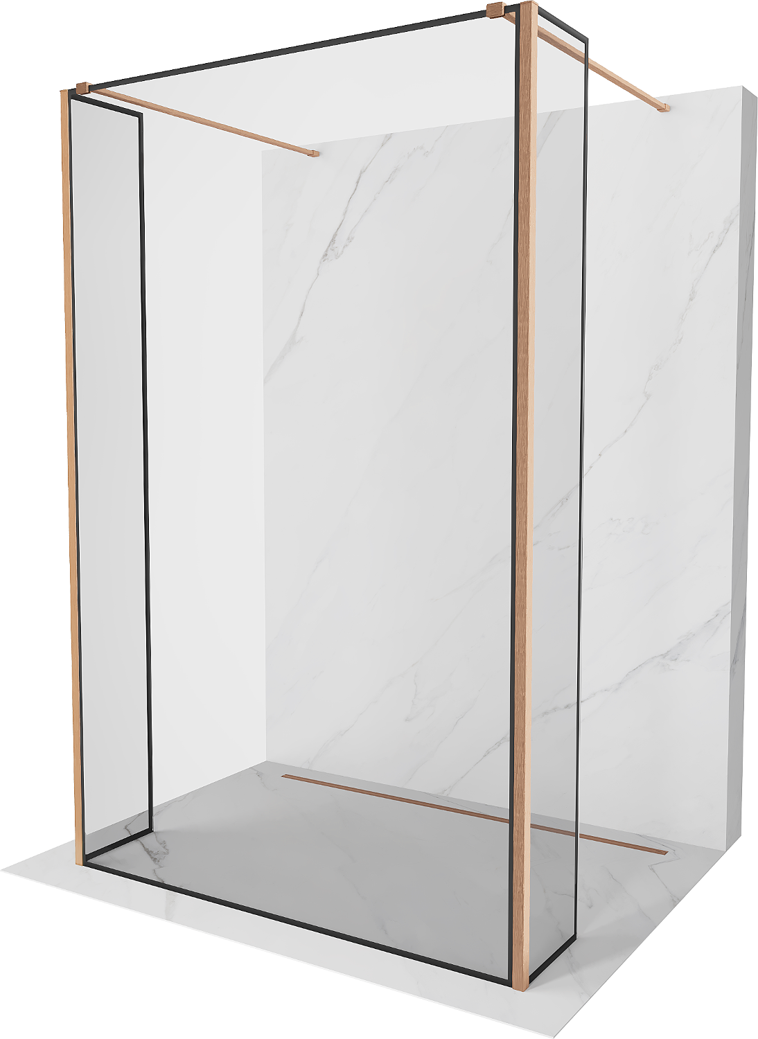 Mexen Kioto szabadon álló zuhanyfal 140 x 30 x 30 cm, fekete keret, kefe réz - 800-140-030-222-65-70-030