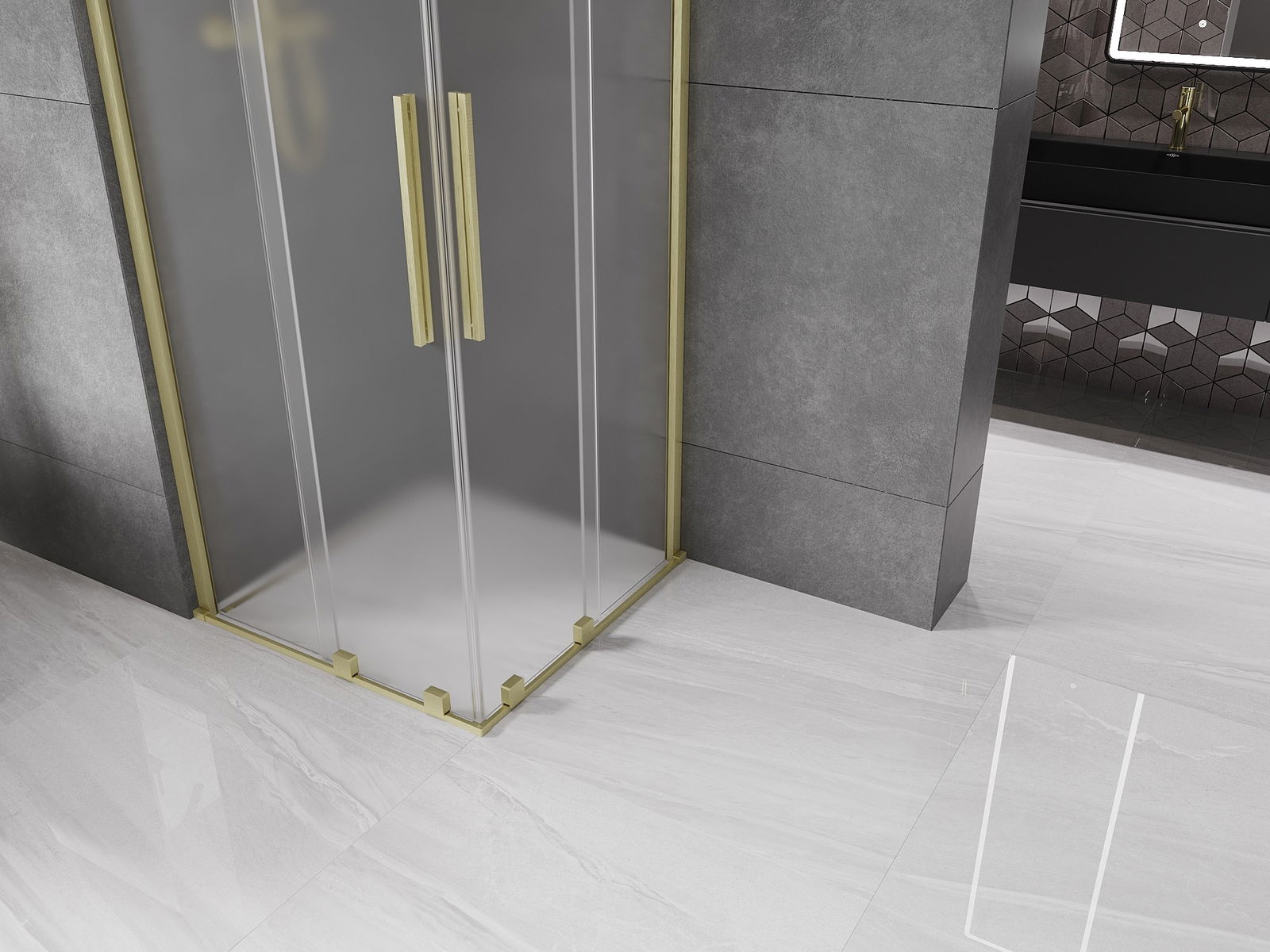 Mexen Velar Duo tolóajtós zuhanykabin 80 x 80 cm, fagyos, arany szálcsiszolt - 871-080-080-32-55