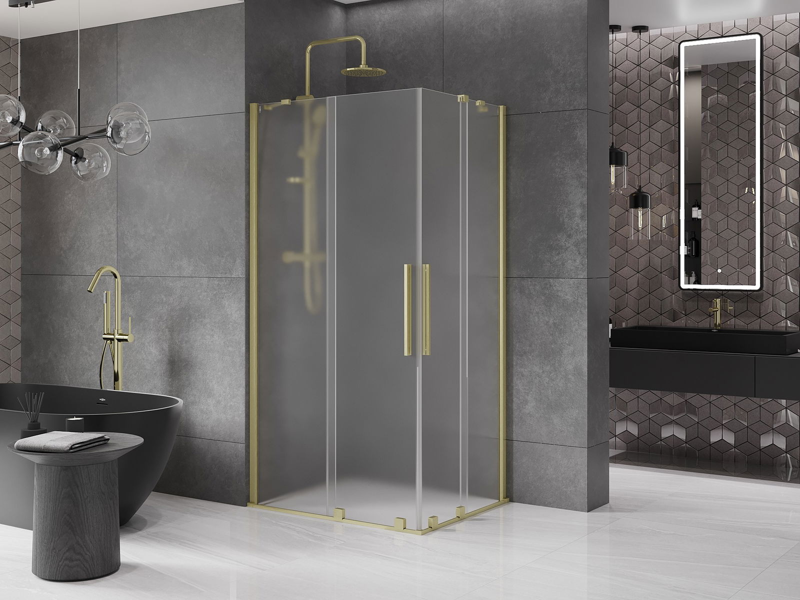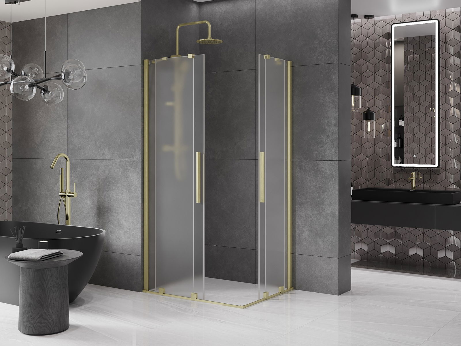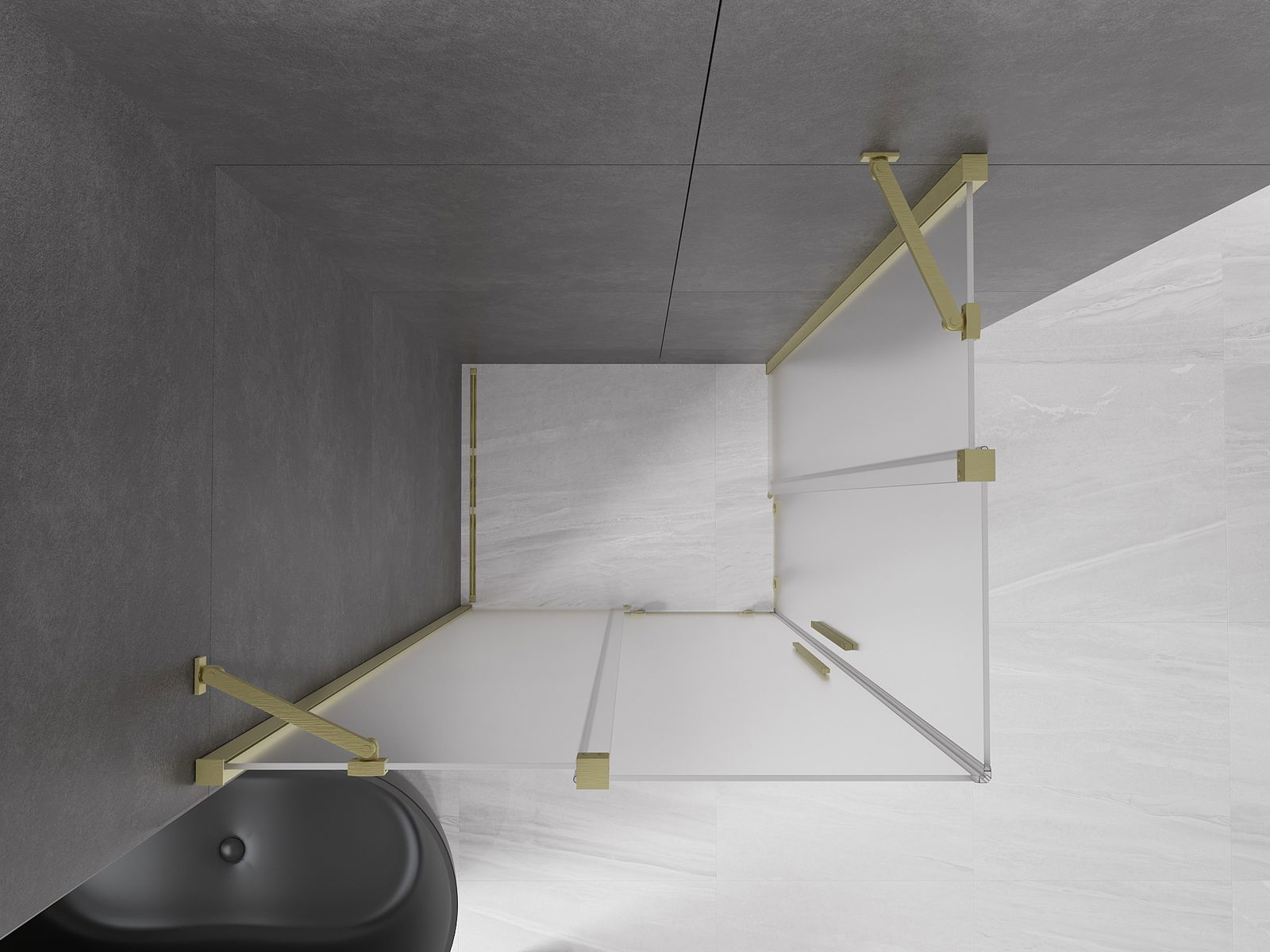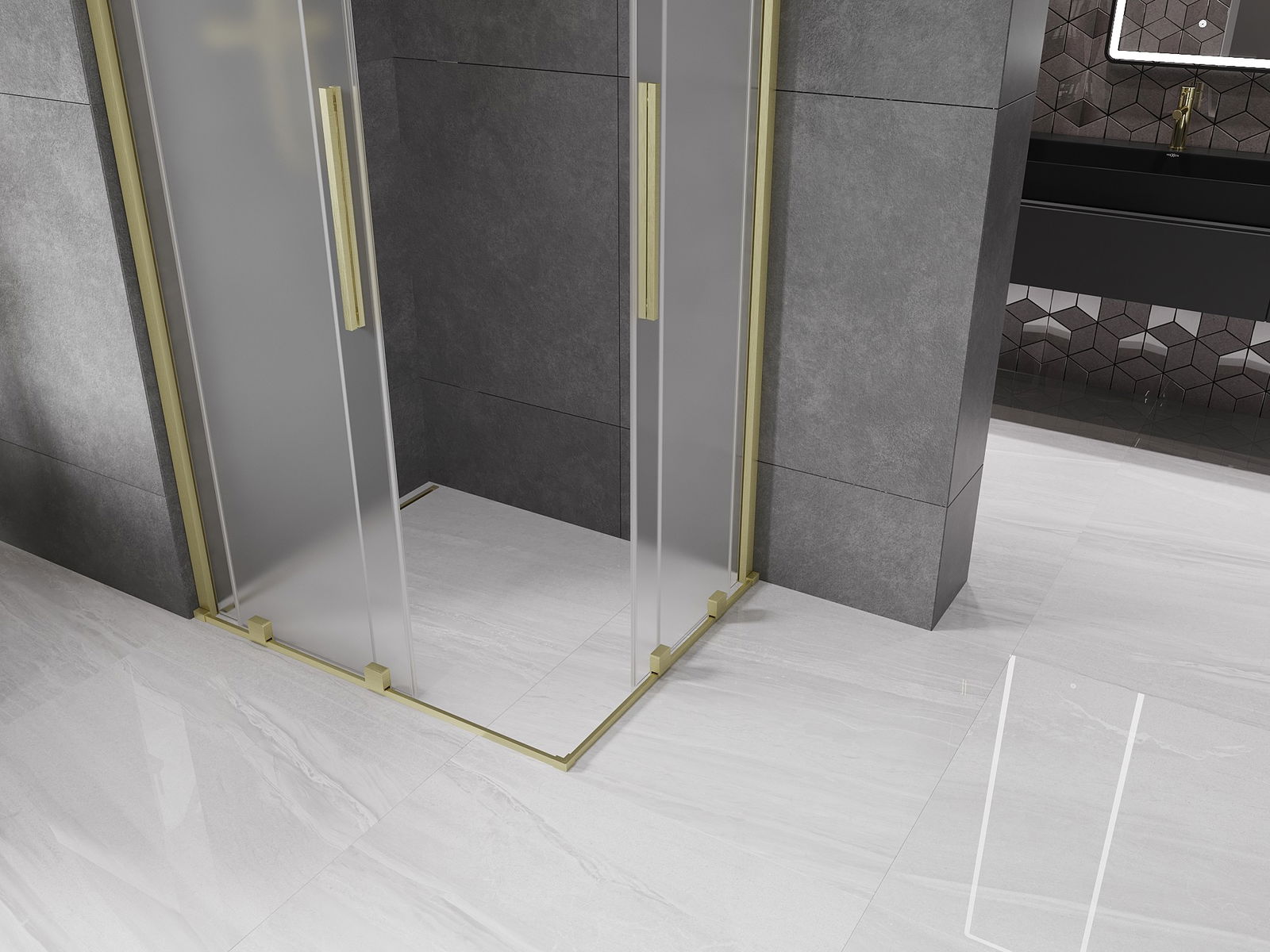 Mexen Velar Duo tolóajtós zuhanykabin 100 x 90 cm, derengő, arany kefélt - 871-100-090-32-55