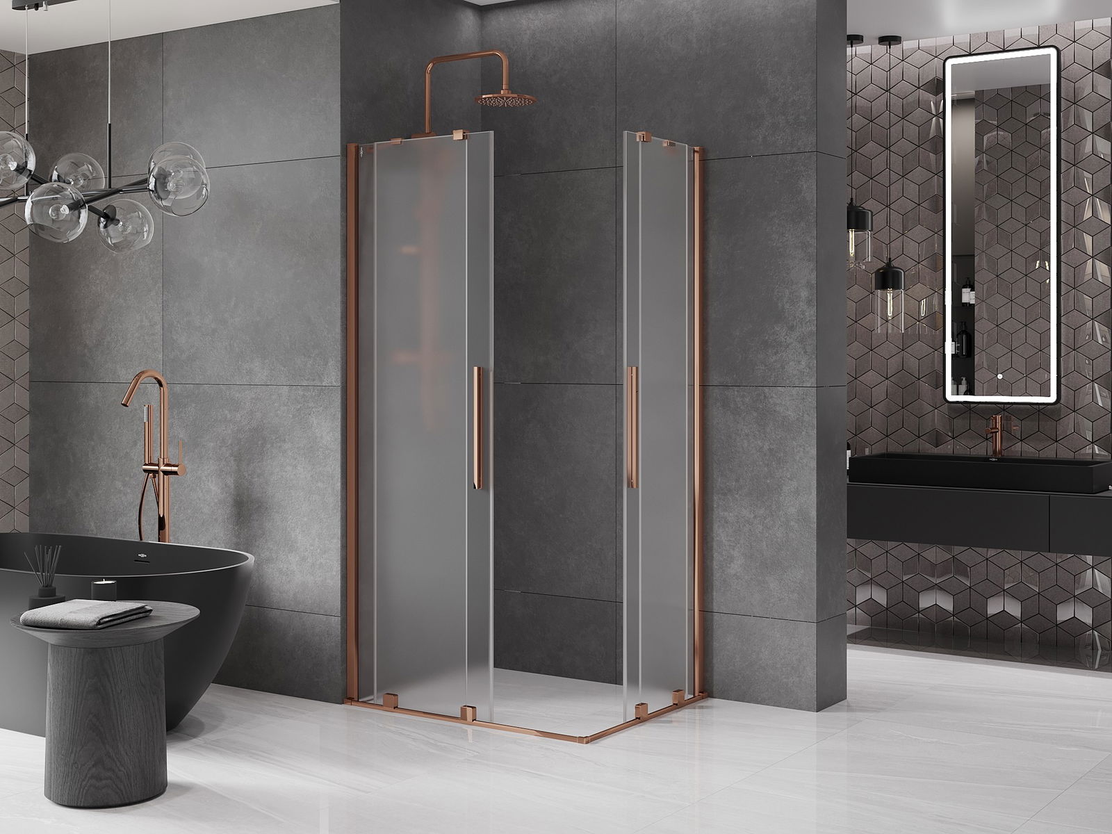 Mexen Velar Duo tolóajtós zuhanykabin 90 x 80 cm, zúzott jég, rózsaarany - 871-090-080-32-60