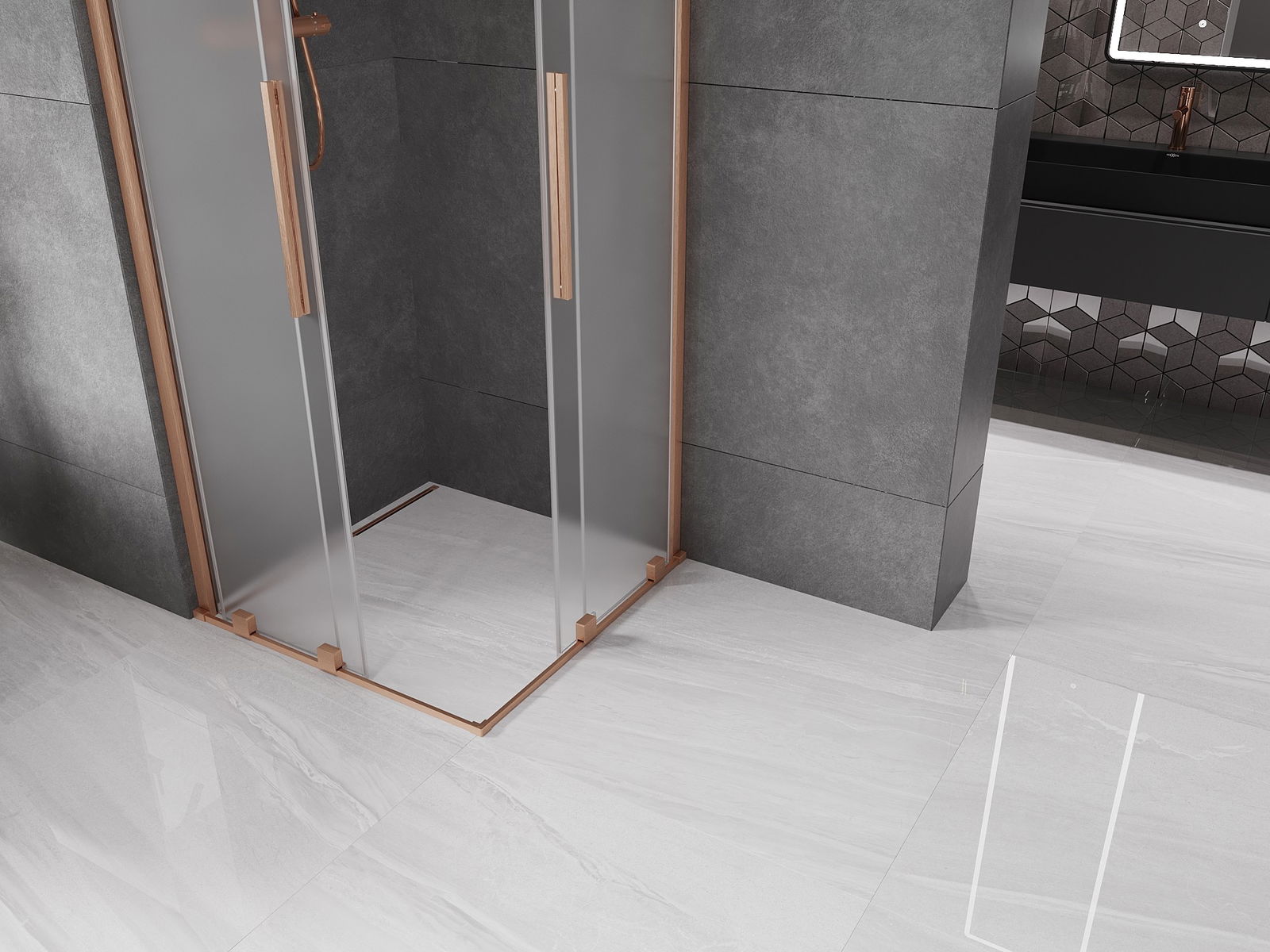 Mexen Velar Duo tolóajtós zuhanykabin 100 x 100 cm, derengés üveg, csiszolt réz - 871-100-100-32-65