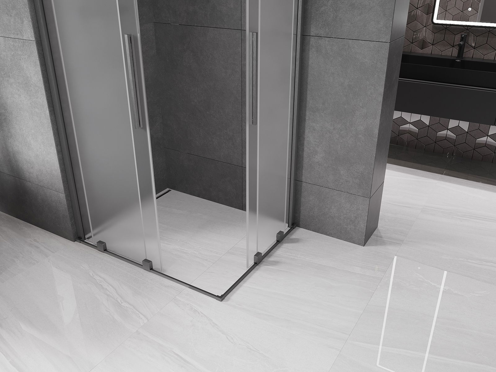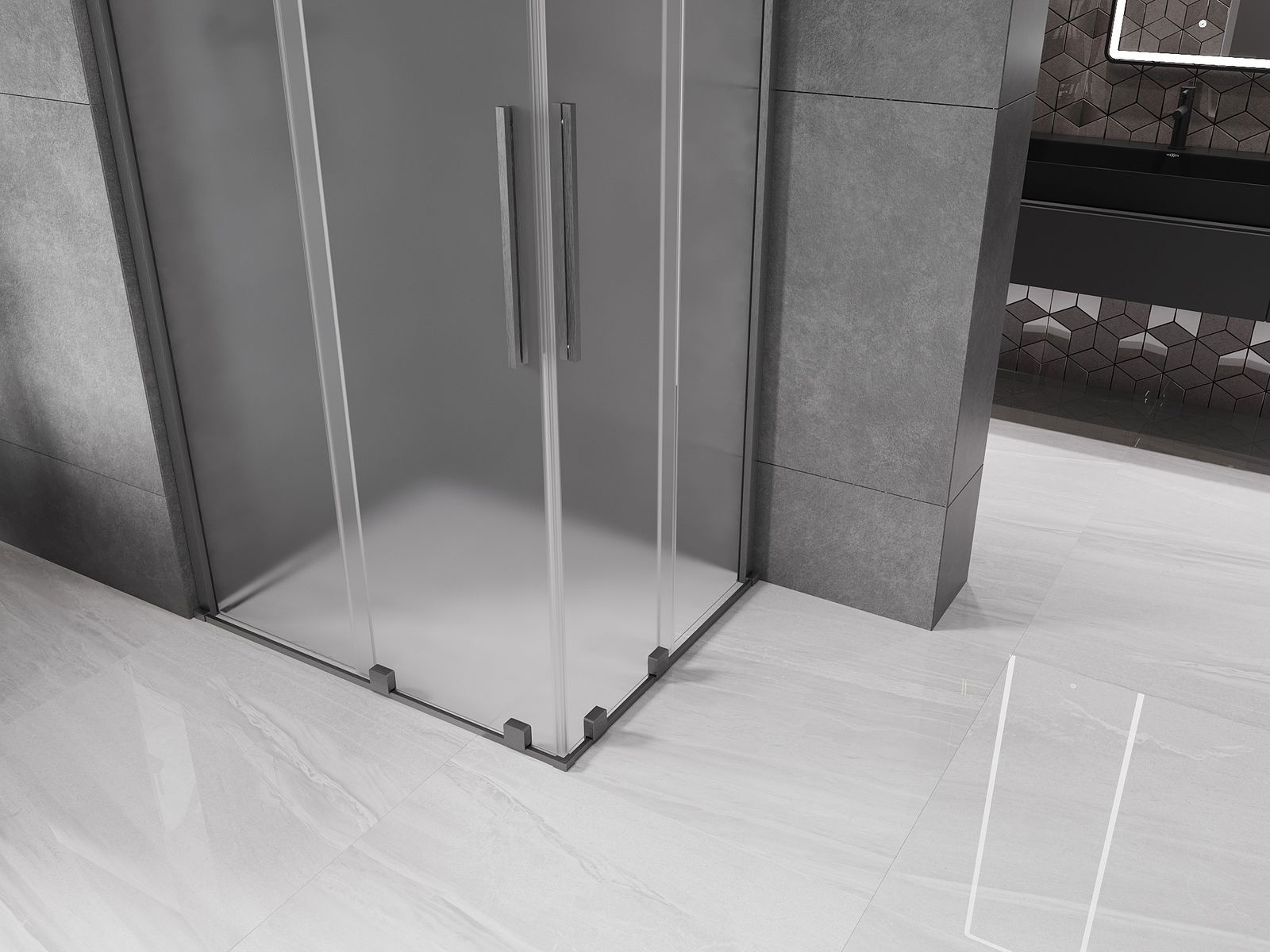 Mexen Velar Duo tolózuhanykabin 90 x 80 cm, fagyott, kefélt fegyverszürke - 871-090-080-32-66