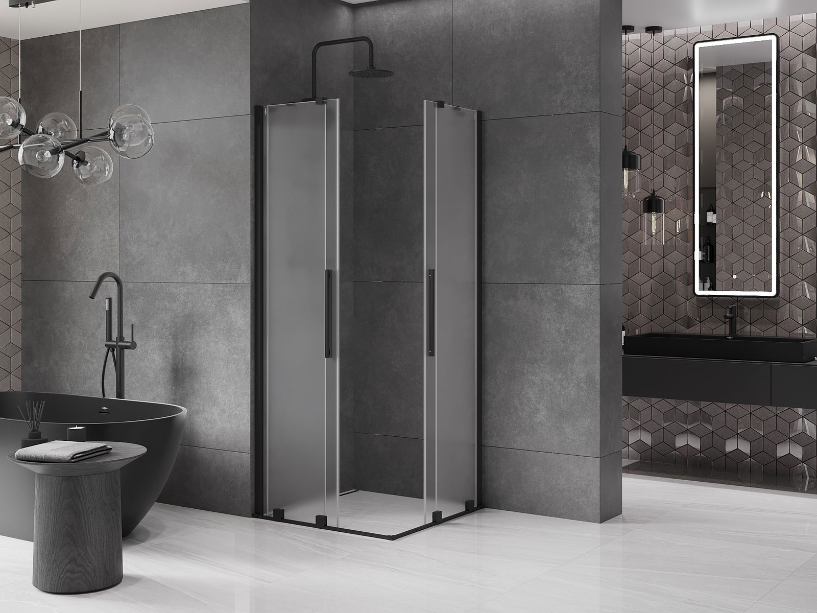 Mexen Velar Duo tolóajtós zuhanykabin 80 x 80 cm, matt, fekete - 871-080-080-32-70