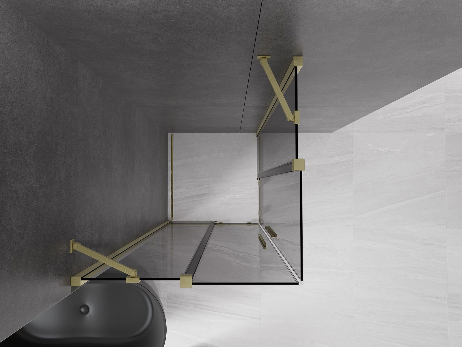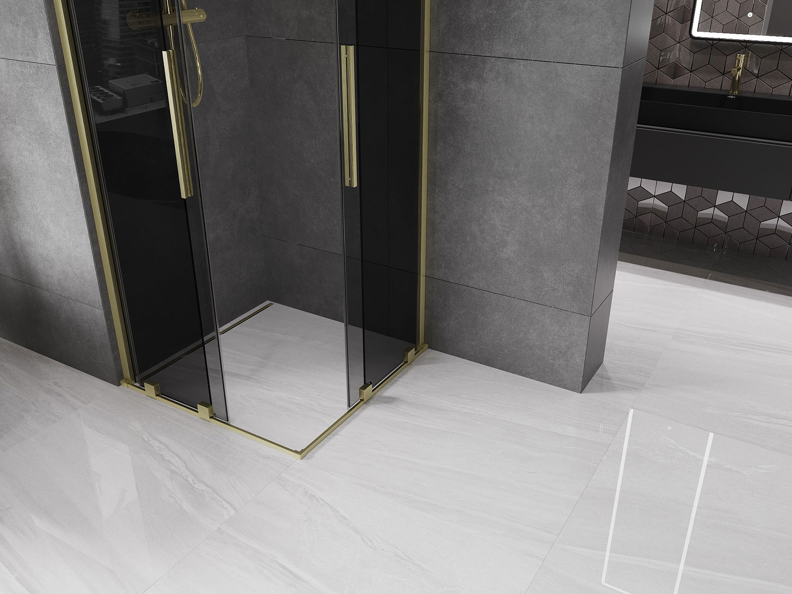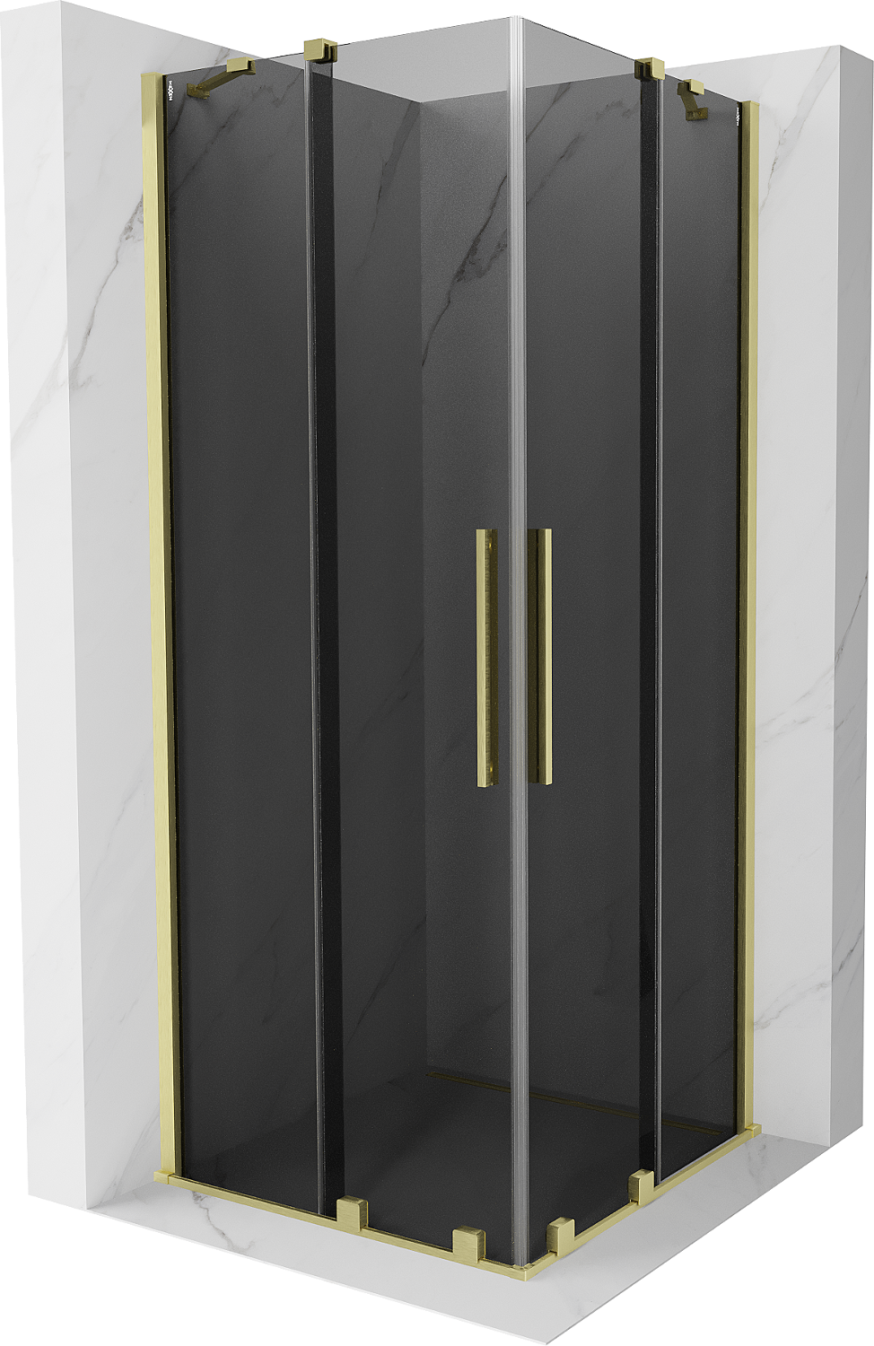 Mexen Velar Duo tolóajtós zuhanykabin 90 x 90 cm, grafit, szálcsiszolt arany - 871-090-090-42-55