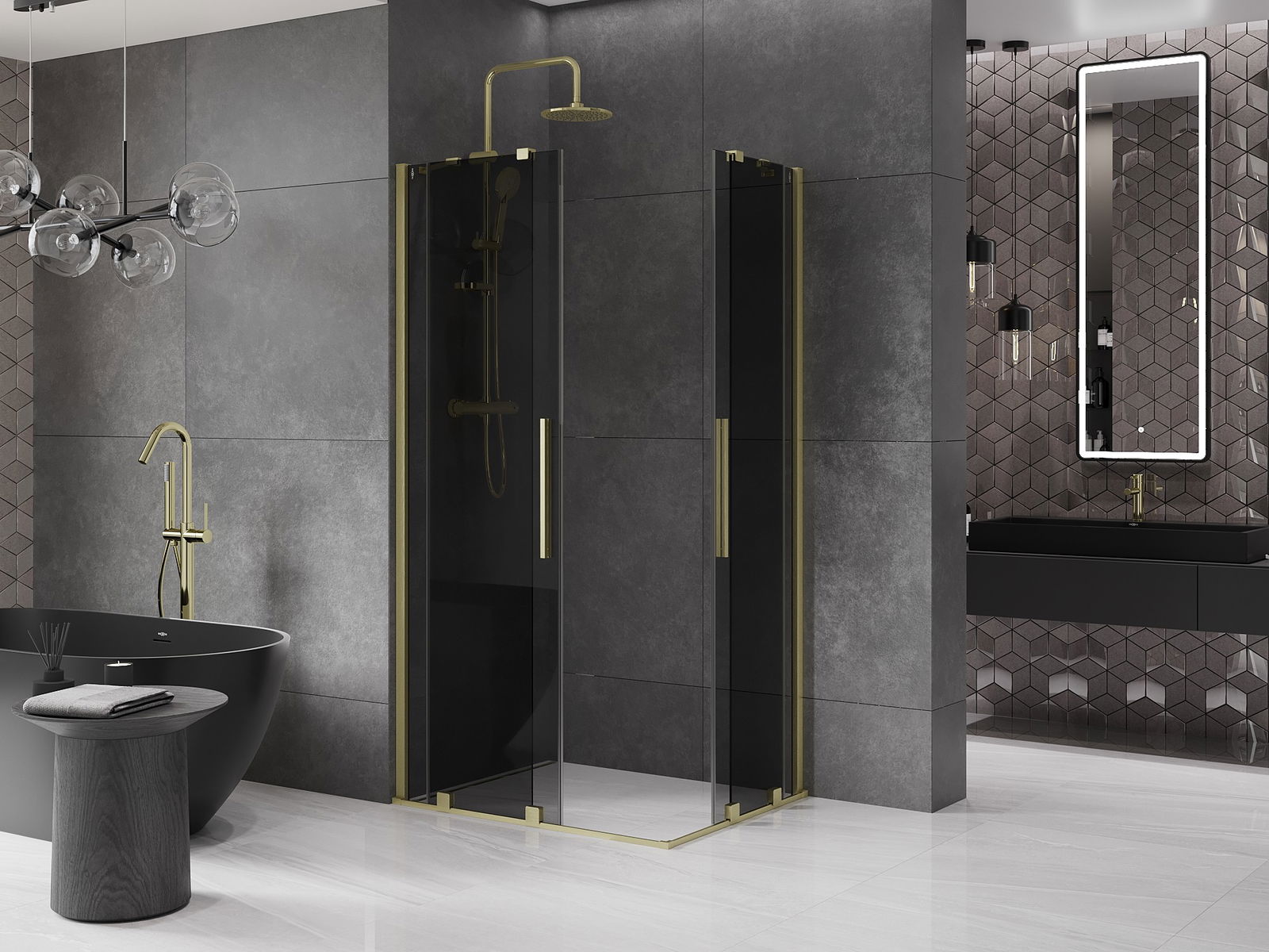 Mexen Velar Duo tolóajtós zuhanykabin 100 x 90 cm, grafit, arany csiszolt - 871-100-090-42-55