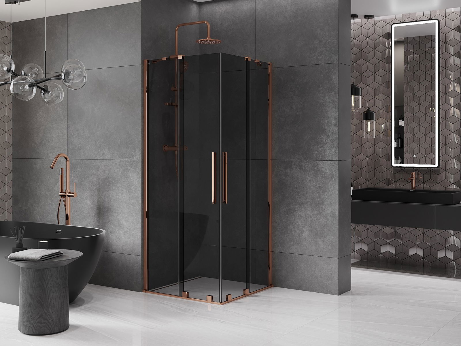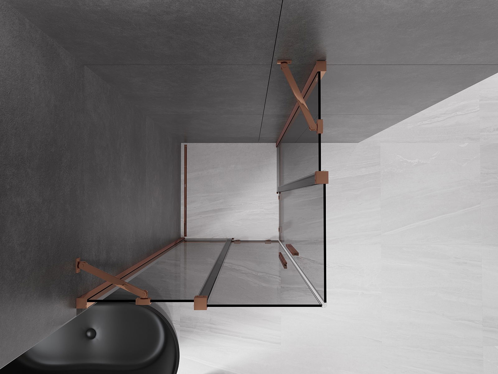 Mexen Velar Duo tolóajtós zuhanykabin 90 x 90 cm, grafit, rózsaarany - 871-090-090-42-60