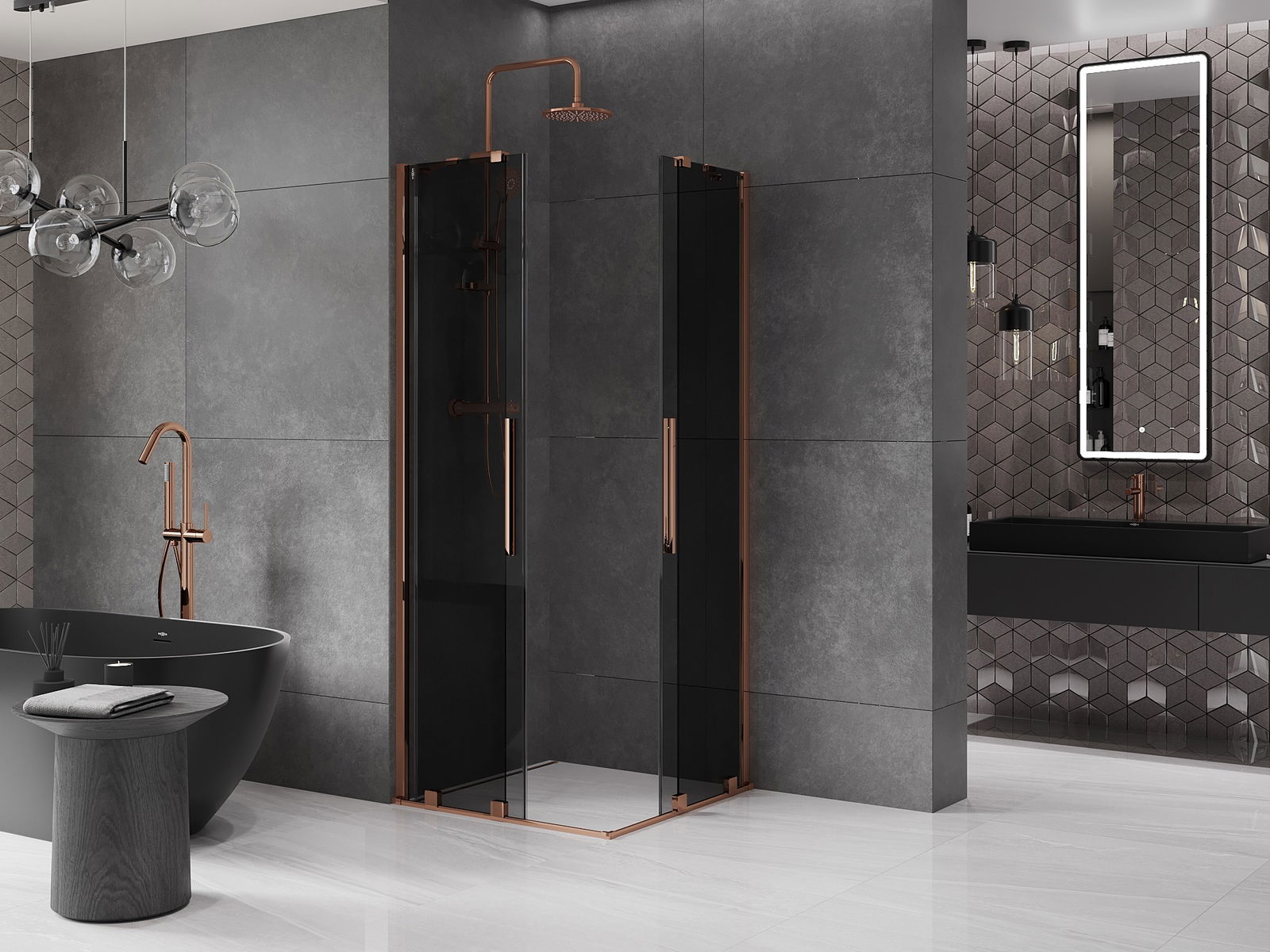 Mexen Velar Duo eltolható zuhanykabin 100 x 100 cm, grafit, rózsaarany - 871-100-100-42-60