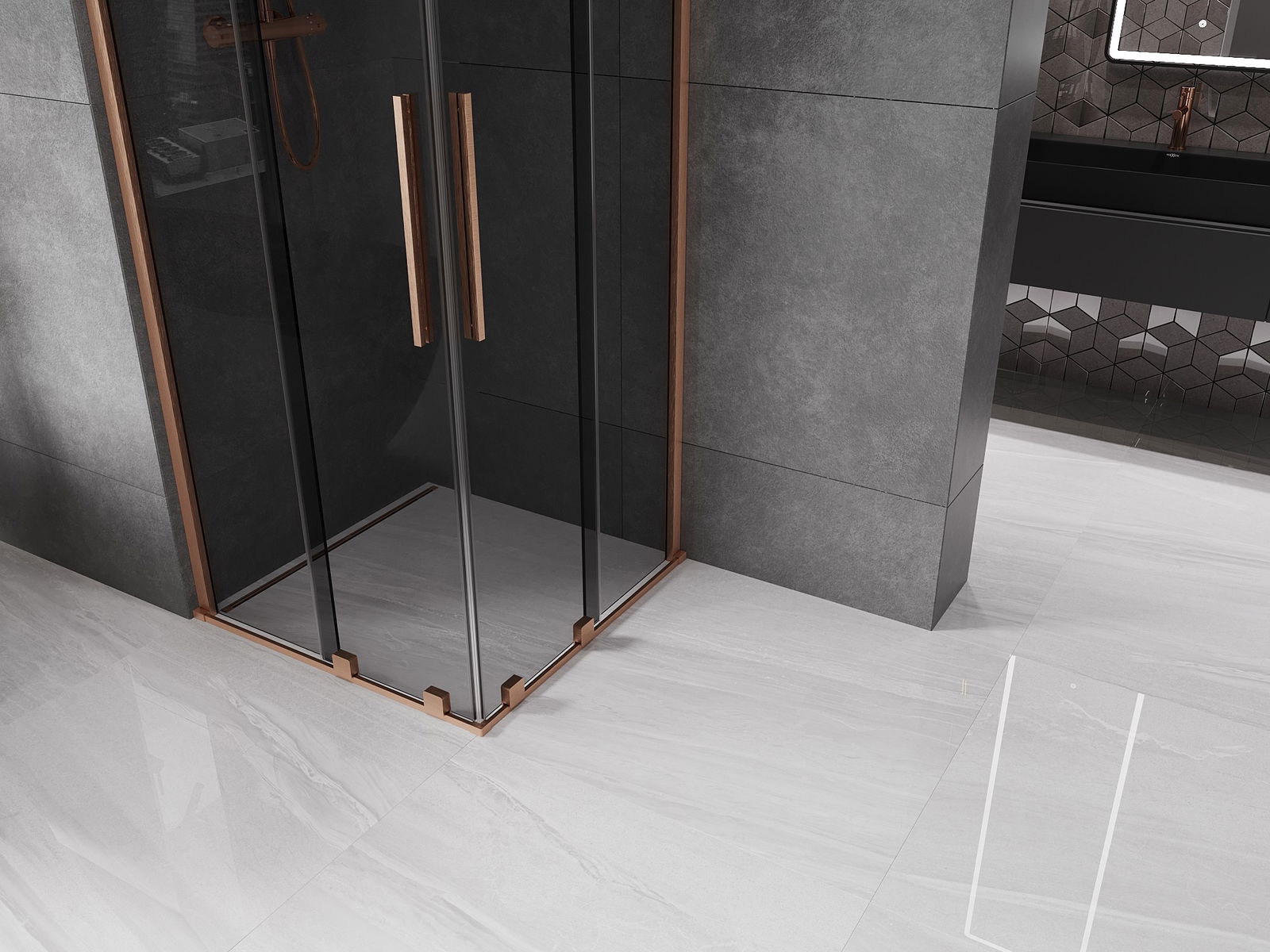 Mexen Velar Duo tolóajtós zuhanykabin 90 x 90 cm, grafit, kefélt réz - 871-090-090-42-65