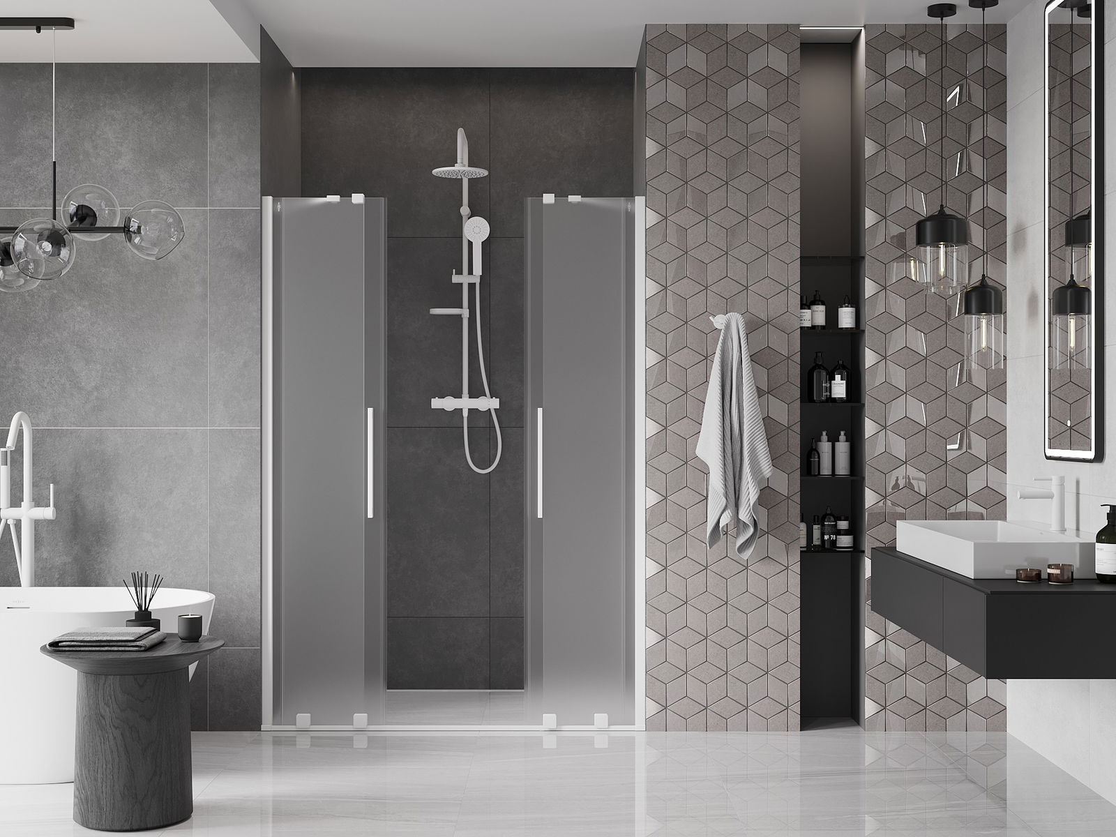 Mexen Velar Duo tolóajtós zuhanyajtó 140 cm, zúzmarás, fehér - 871-140-000-32-20