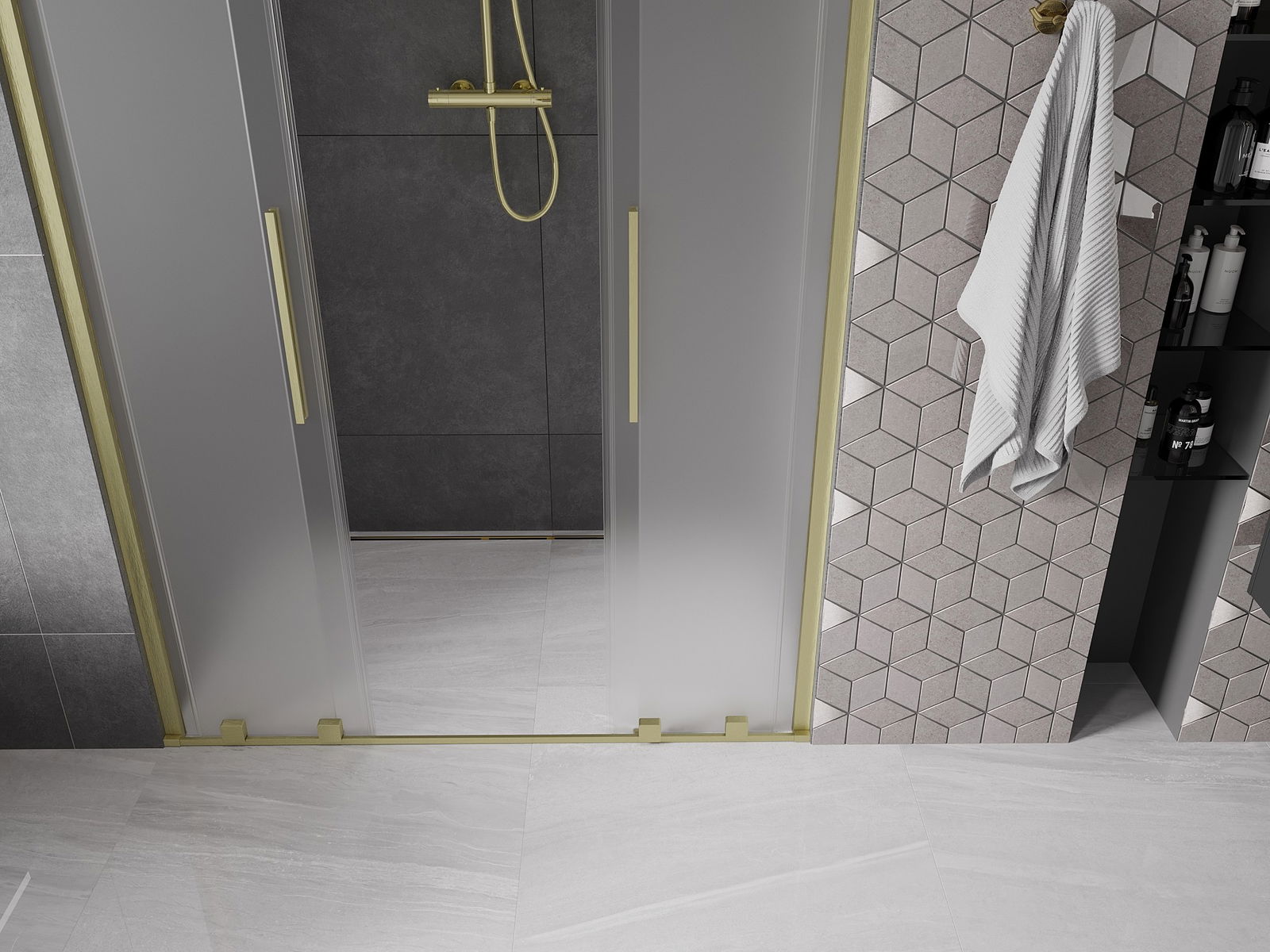 Mexen Velar Duo tolóajtós zuhanyajtó 160 cm, fagyott, arany kefélt - 871-160-000-32-55