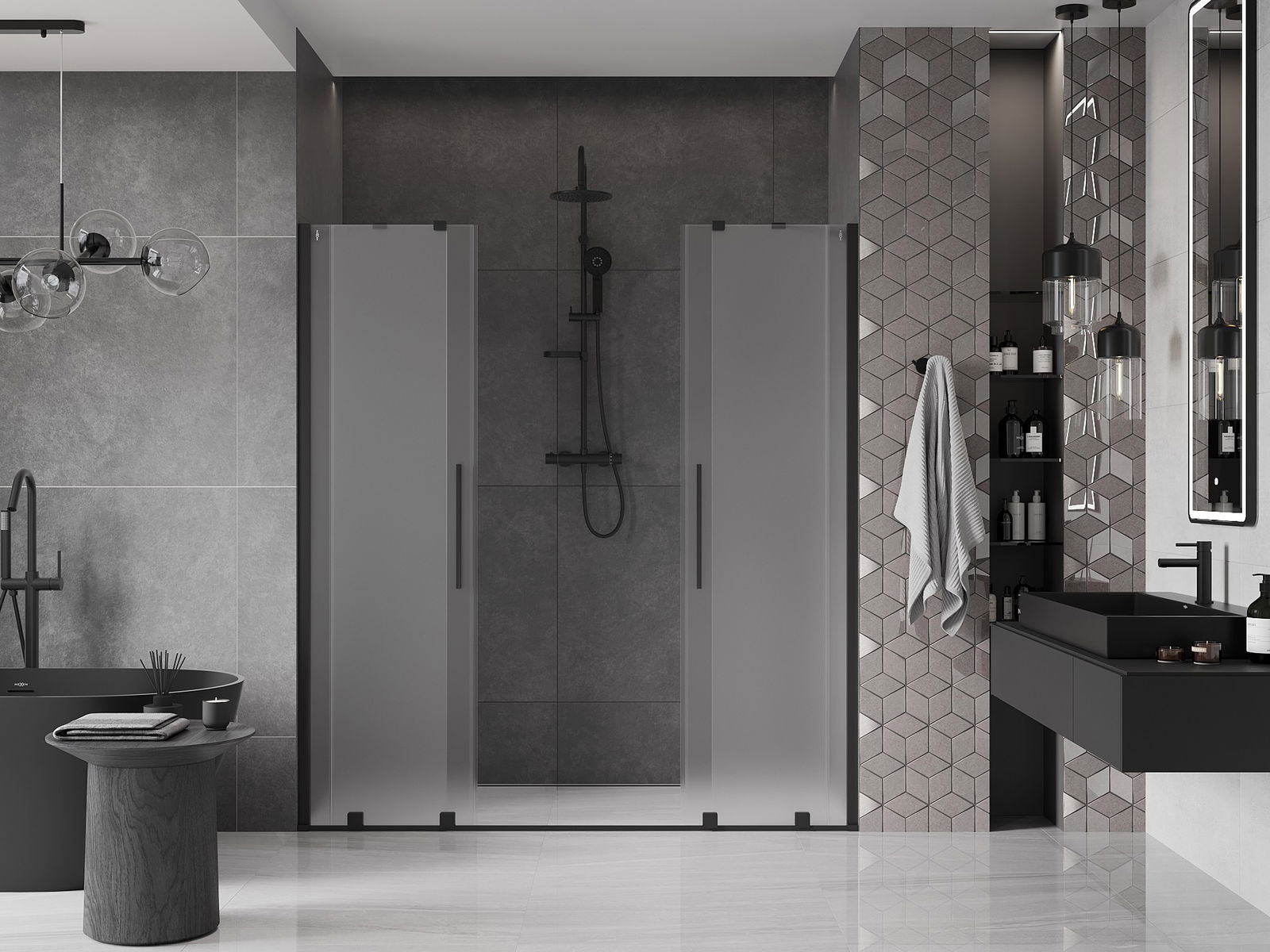 Mexen Velar Duo tolózuhanyajtó 180 cm, fagyott üveg, fekete - 871-180-000-32-70