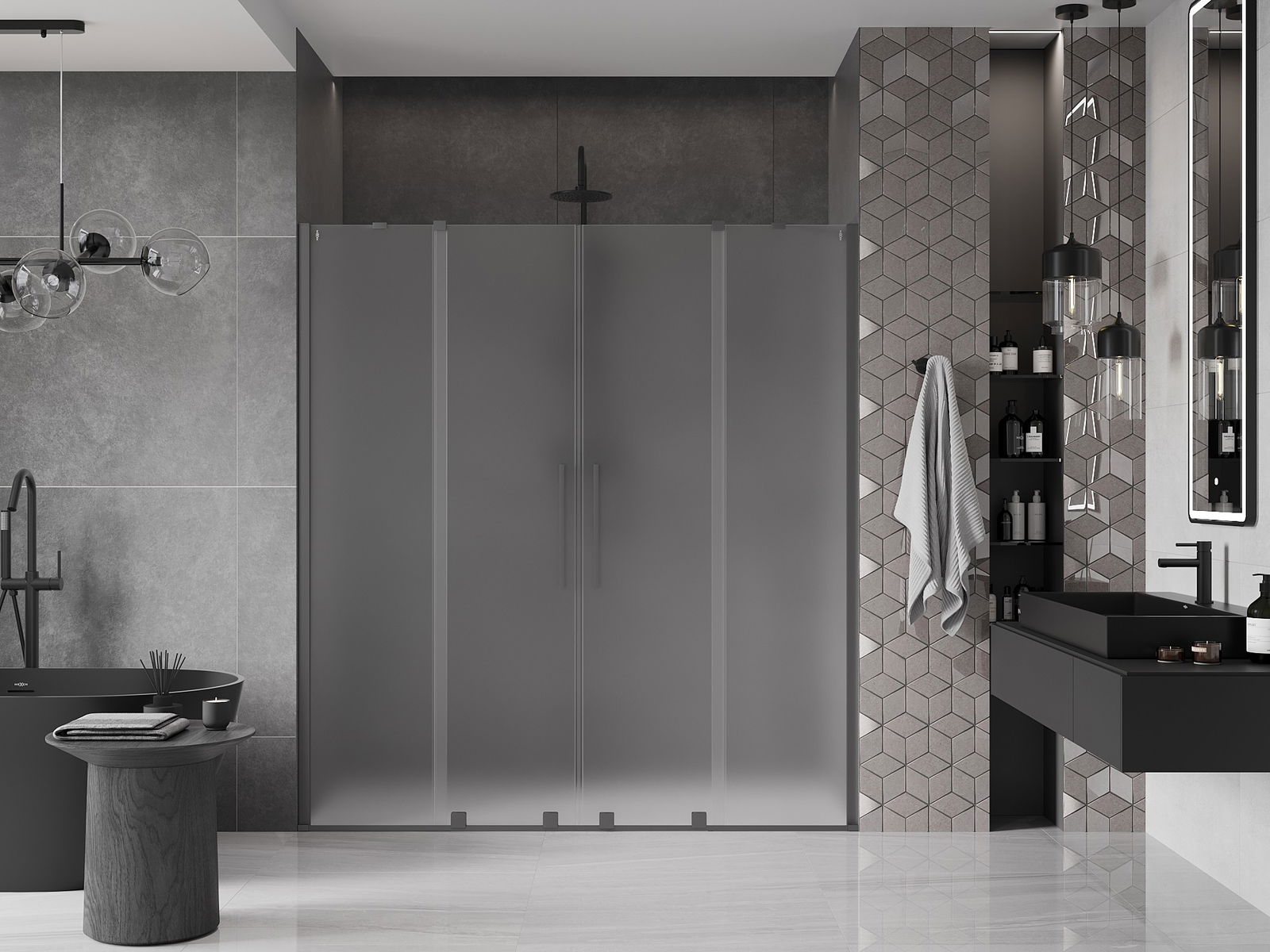 Mexen Velar Duo 180 cm-es tolóajtós zuhanyajtó, jégvirág minta, gun metal - 871-180-000-32-95