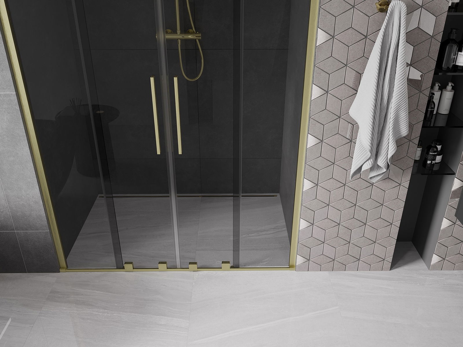 Mexen Velar Duo tolóajtós zuhanykabin 160 cm, grafit, arany kefélt - 871-160-000-42-55