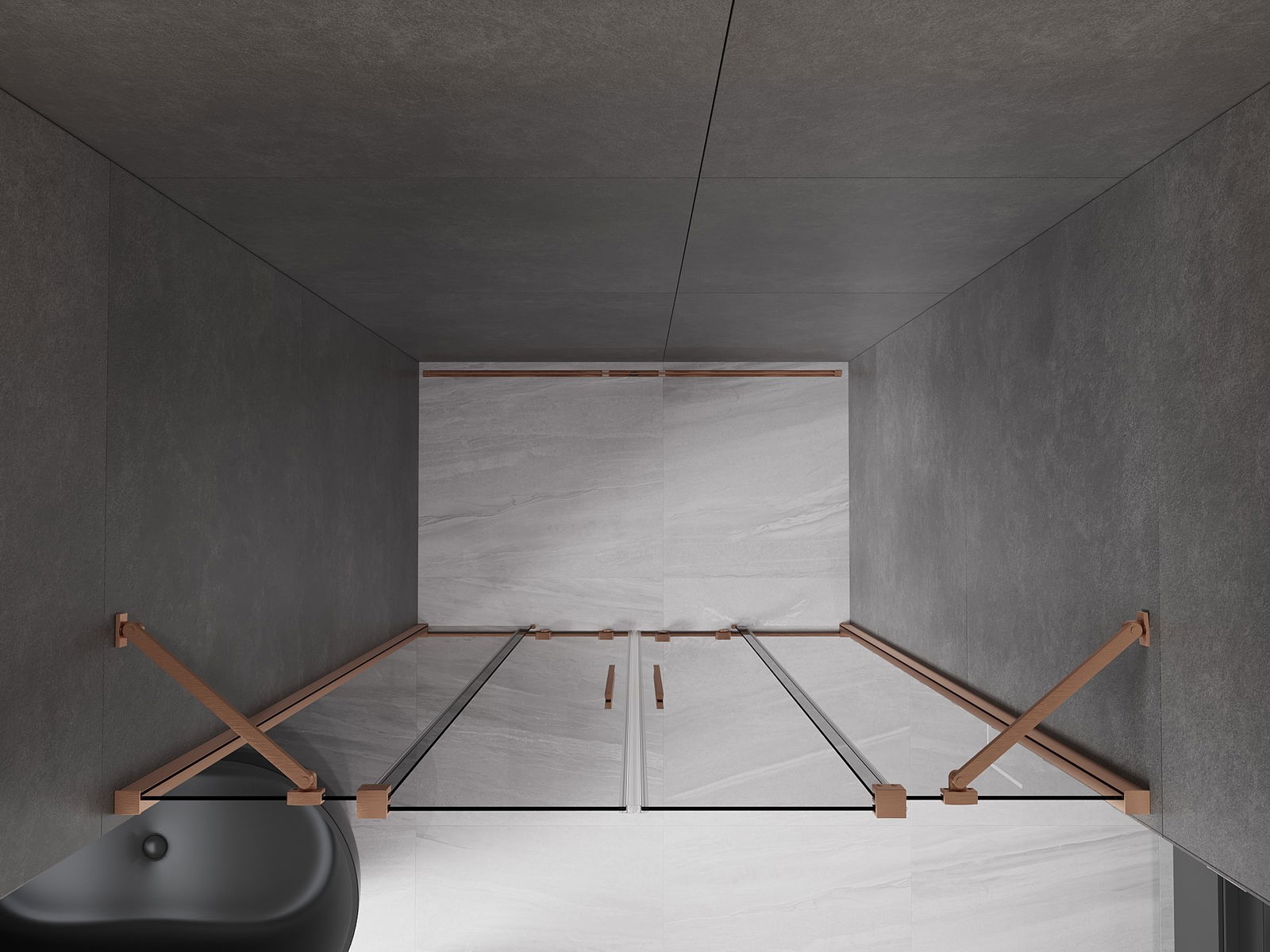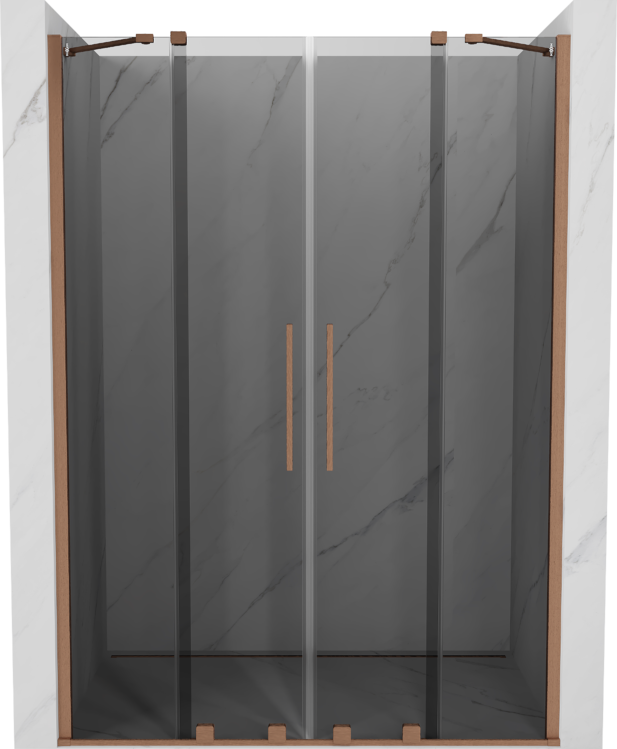 Mexen Velar Duo tolóajtós zuhanyajtó 150 cm, grafit, kefélt réz - 871-150-000-42-65
