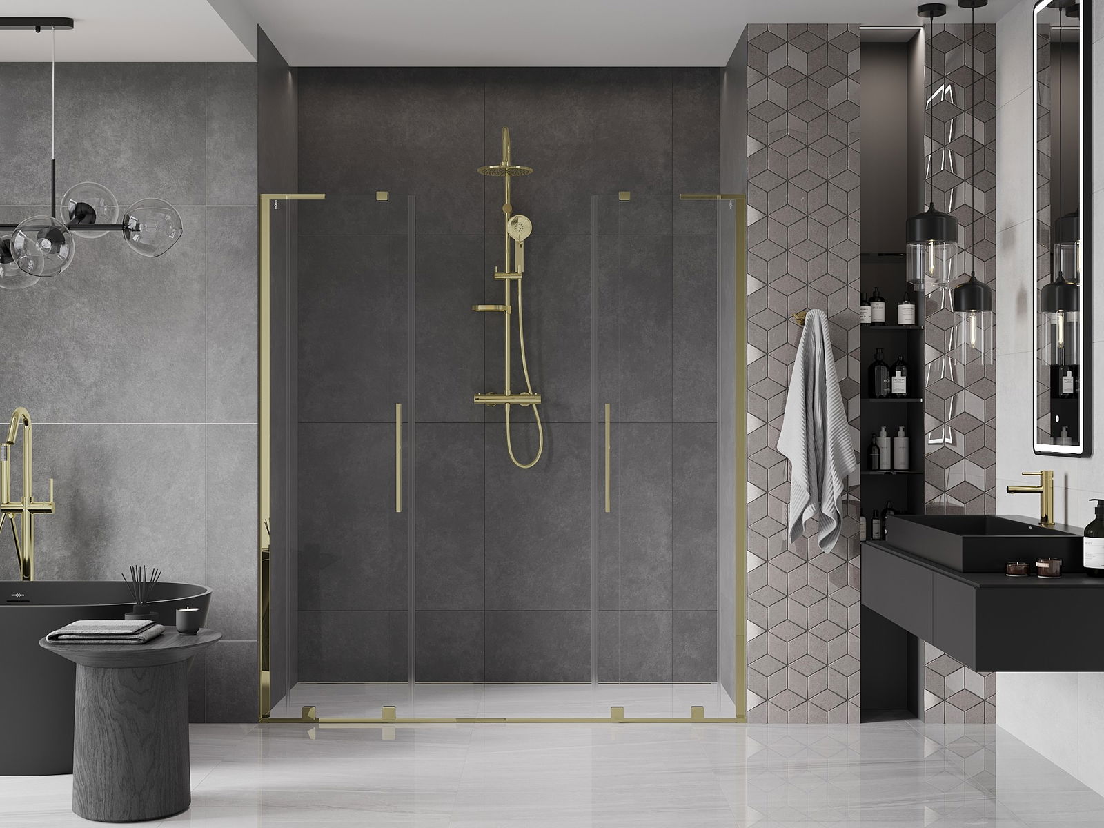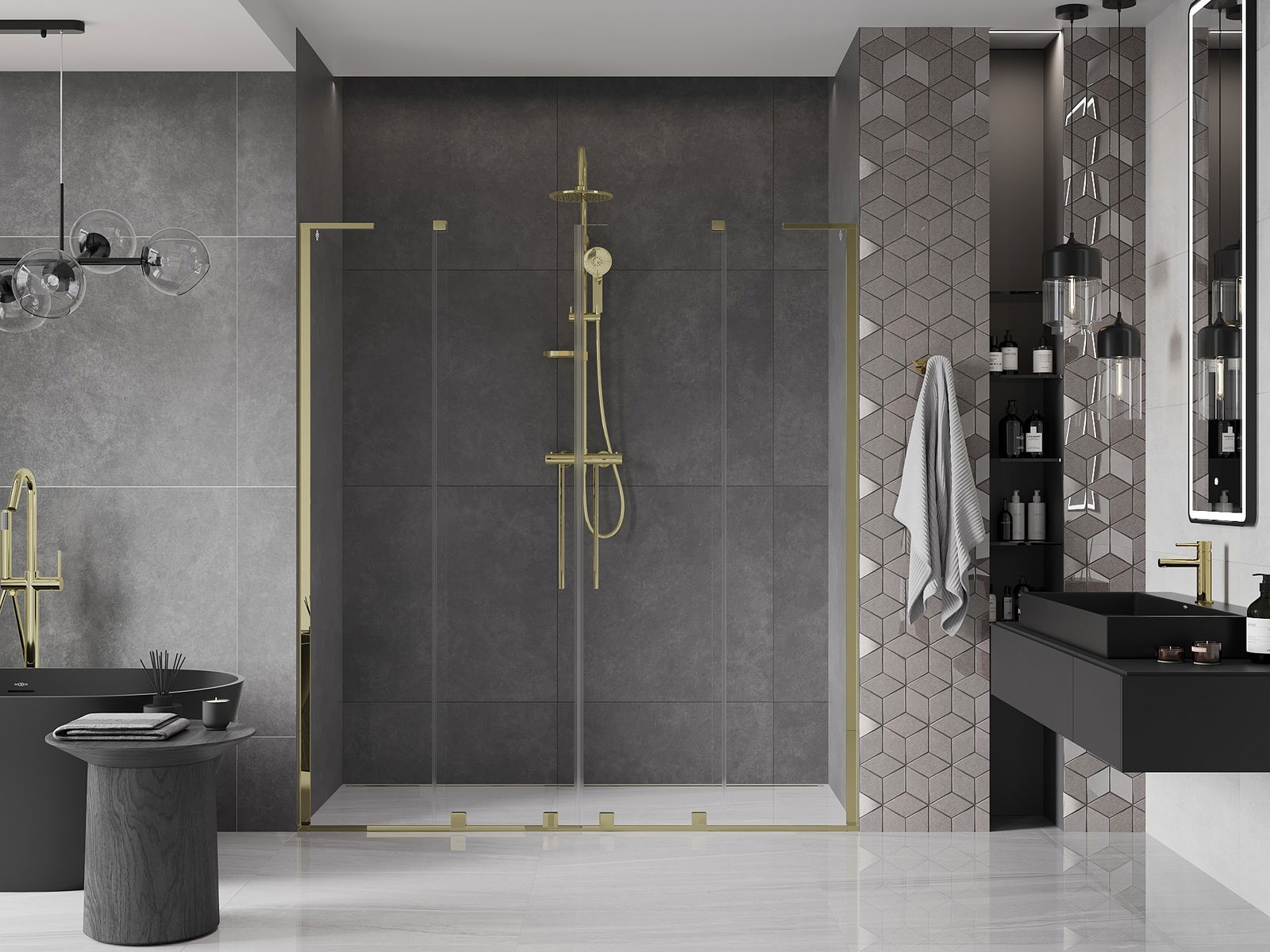 Mexen Velar L Duo 200 cm-es tolóajtós zuhanyajtó, átlátszó, arany - 871-200-003-02-50