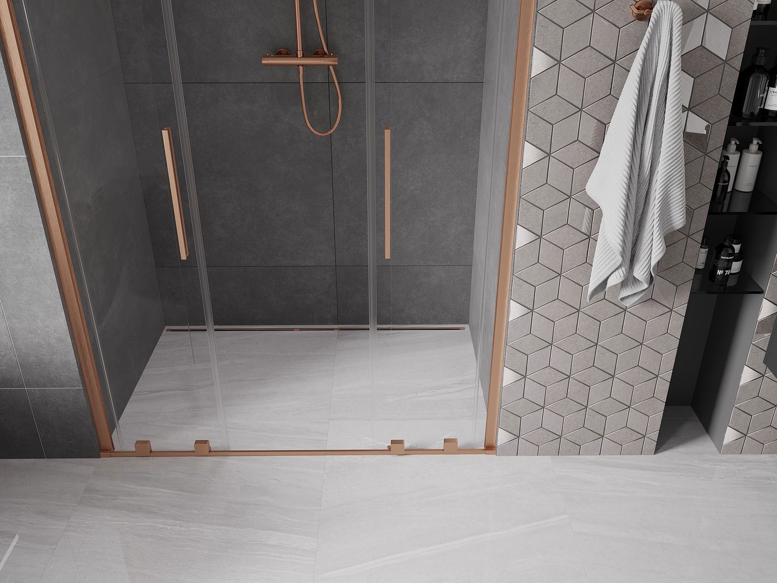 Mexen Velar L Duo tolóajtós zuhanyajtó 150 cm, átlátszó, csiszolt réz - 871-150-003-02-65
