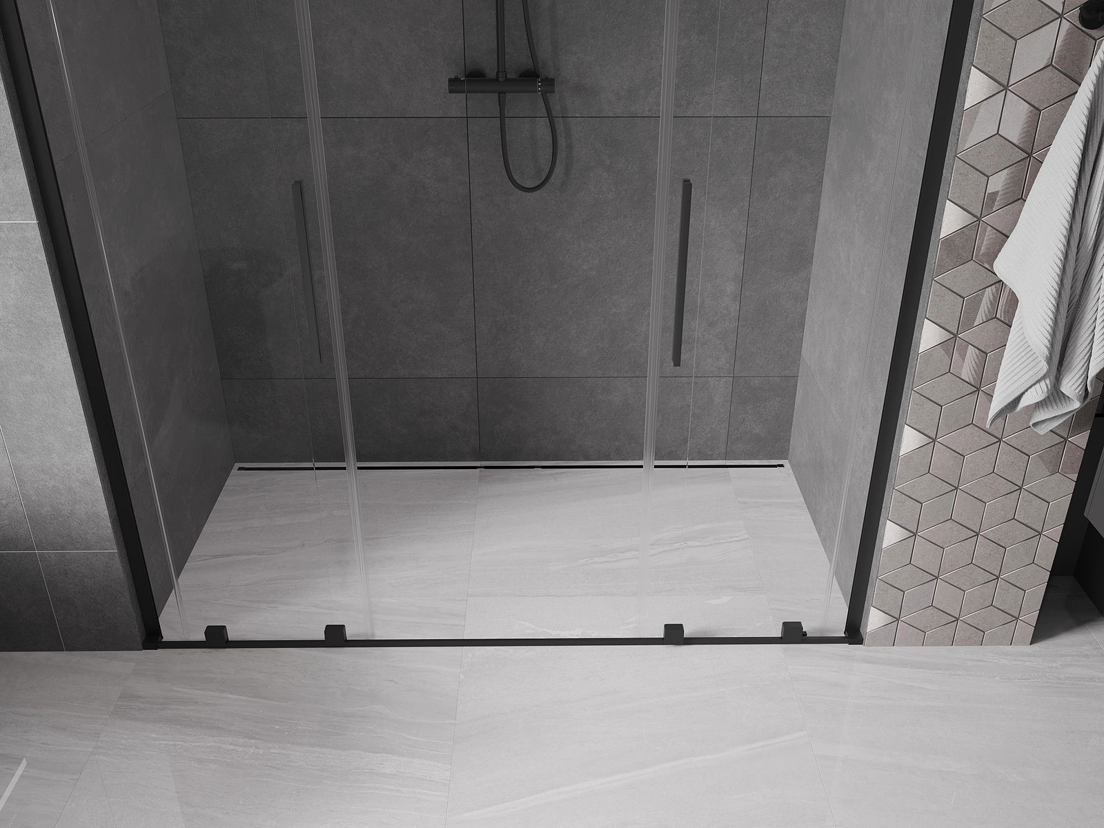 A terméket igény szerint felszerelheti akár a zuhanytálcára, akár közvetlenül a padlóra. Az univerzális szerelési mód lehetővé teszi a termék alkalmazkodását különböző típusú fürdőszobákhoz és térbeli konfigurációkhoz.