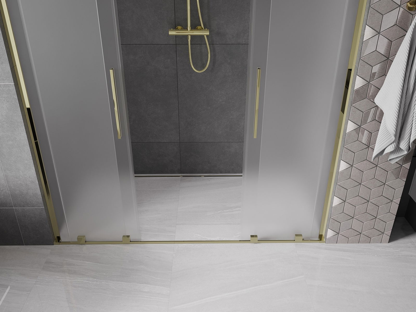Mexen Velar L Duo tolóajtós zuhanykabin 170 cm, matt, arany - 871-170-003-32-50