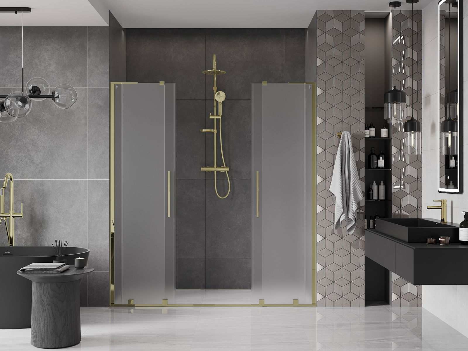 Mexen Velar L Duo tolóajtós zuhanyajtó 200 cm, homokfúvott, arany - 871-200-003-32-50