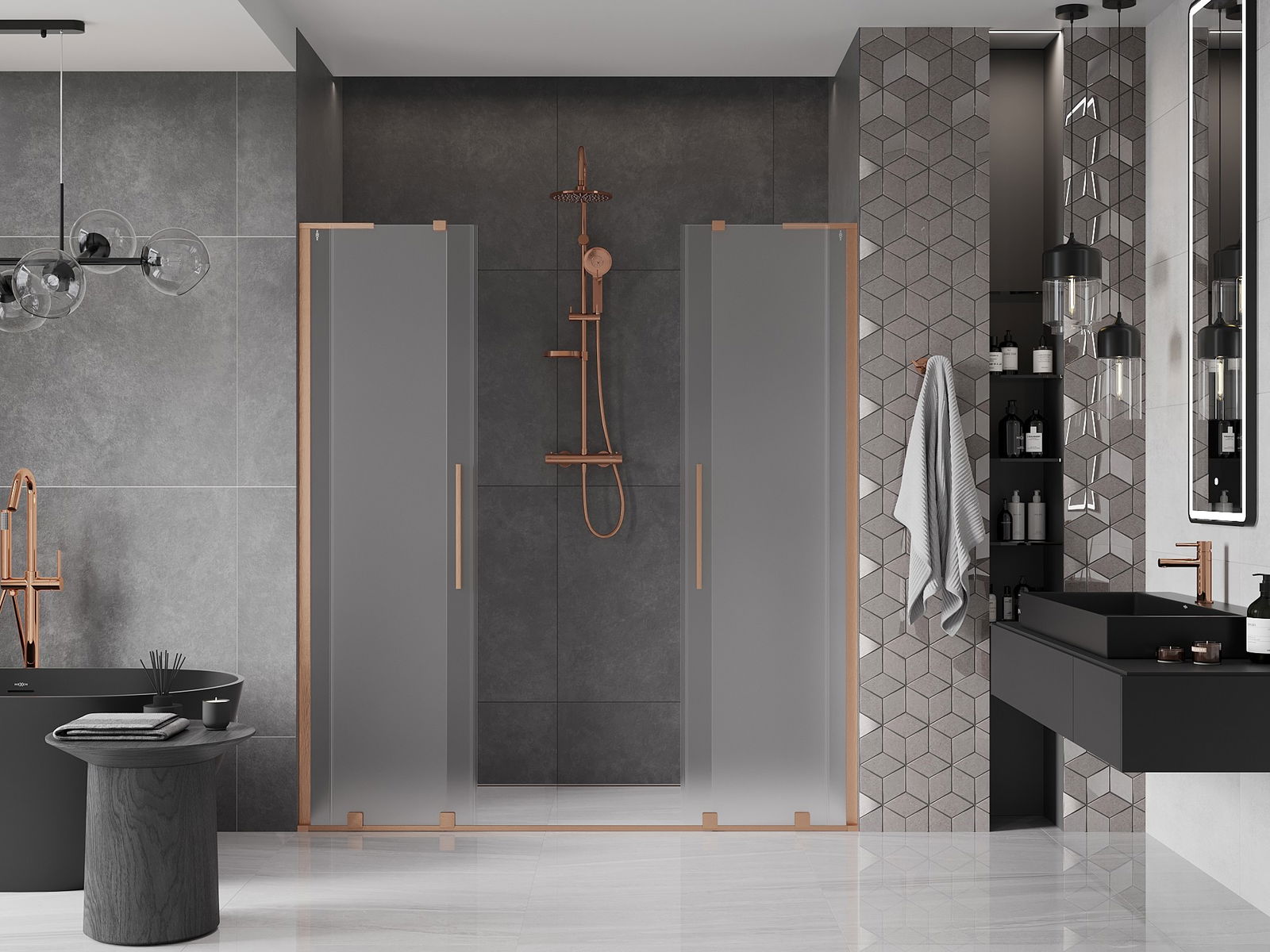 Mexen Velar L Duo toló zuhanyajtó 170 cm, homályos, kefélt réz - 871-170-003-32-65