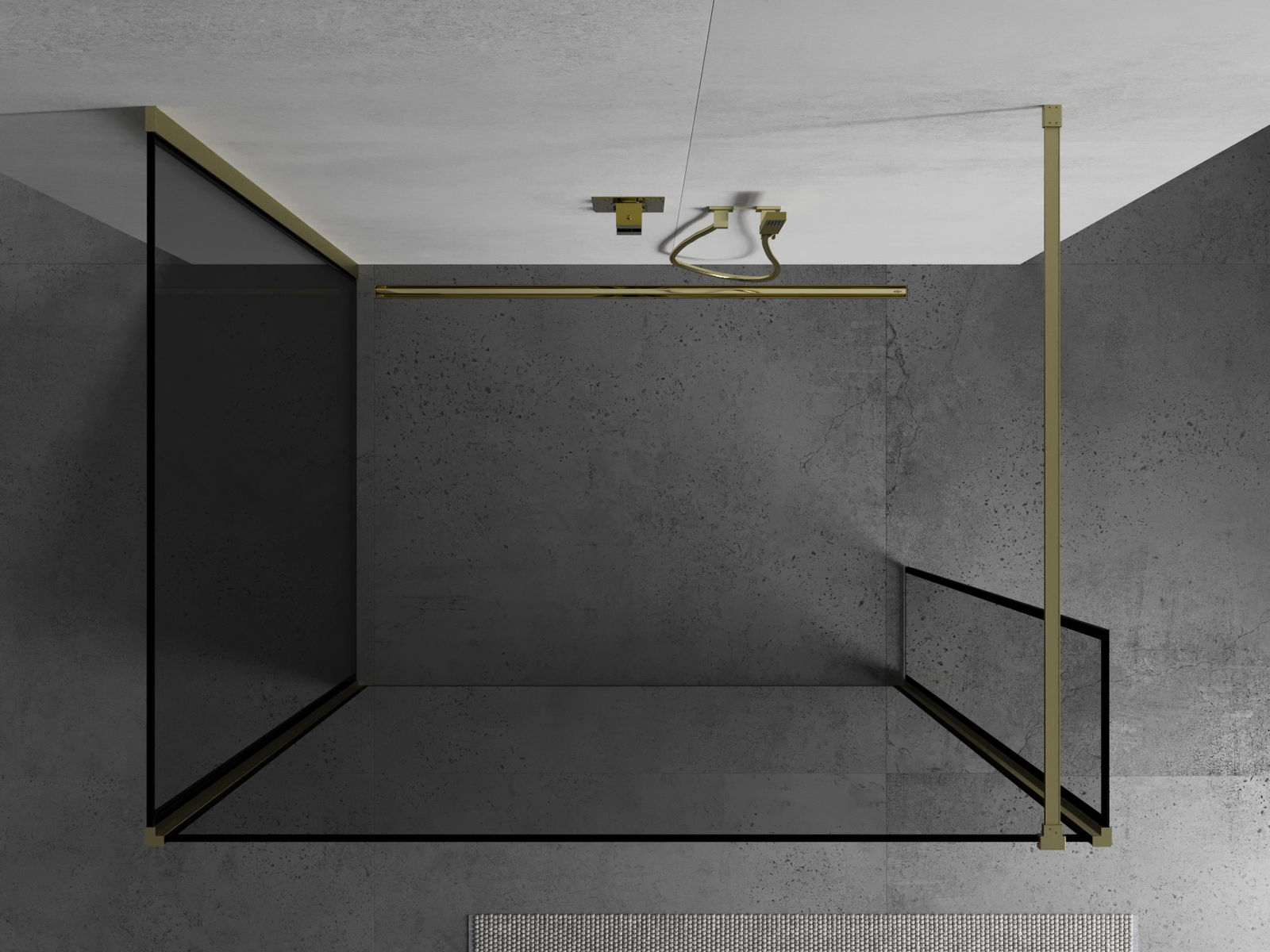 Mexen Kioto zuhanyfal Walk-in 140 x 80 x 30 cm, fekete keret, arany szálcsiszolt - 800-140-080-221-55-70-030
