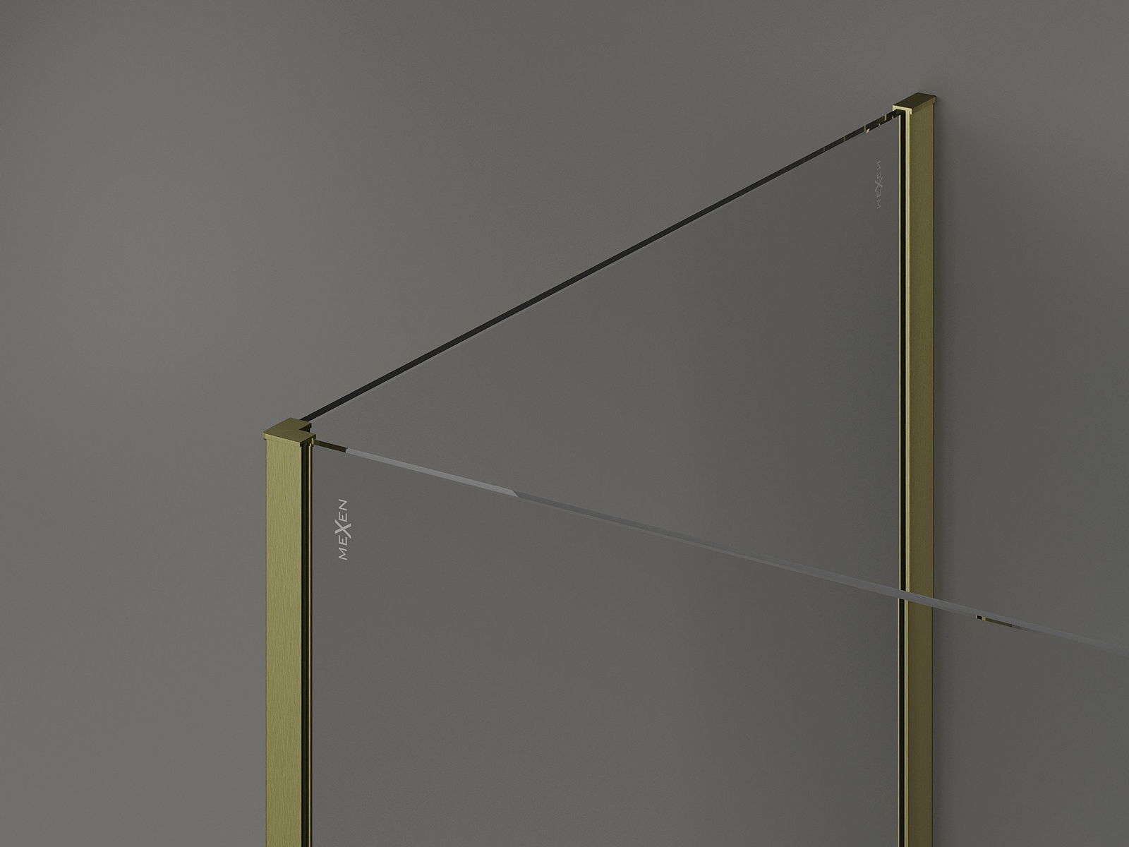 Mexen Kioto zuhanyfal Walk-in 90 x 90 x 30 cm, fekete keret, arany kefélt - 800-090-090-221-55-70-030