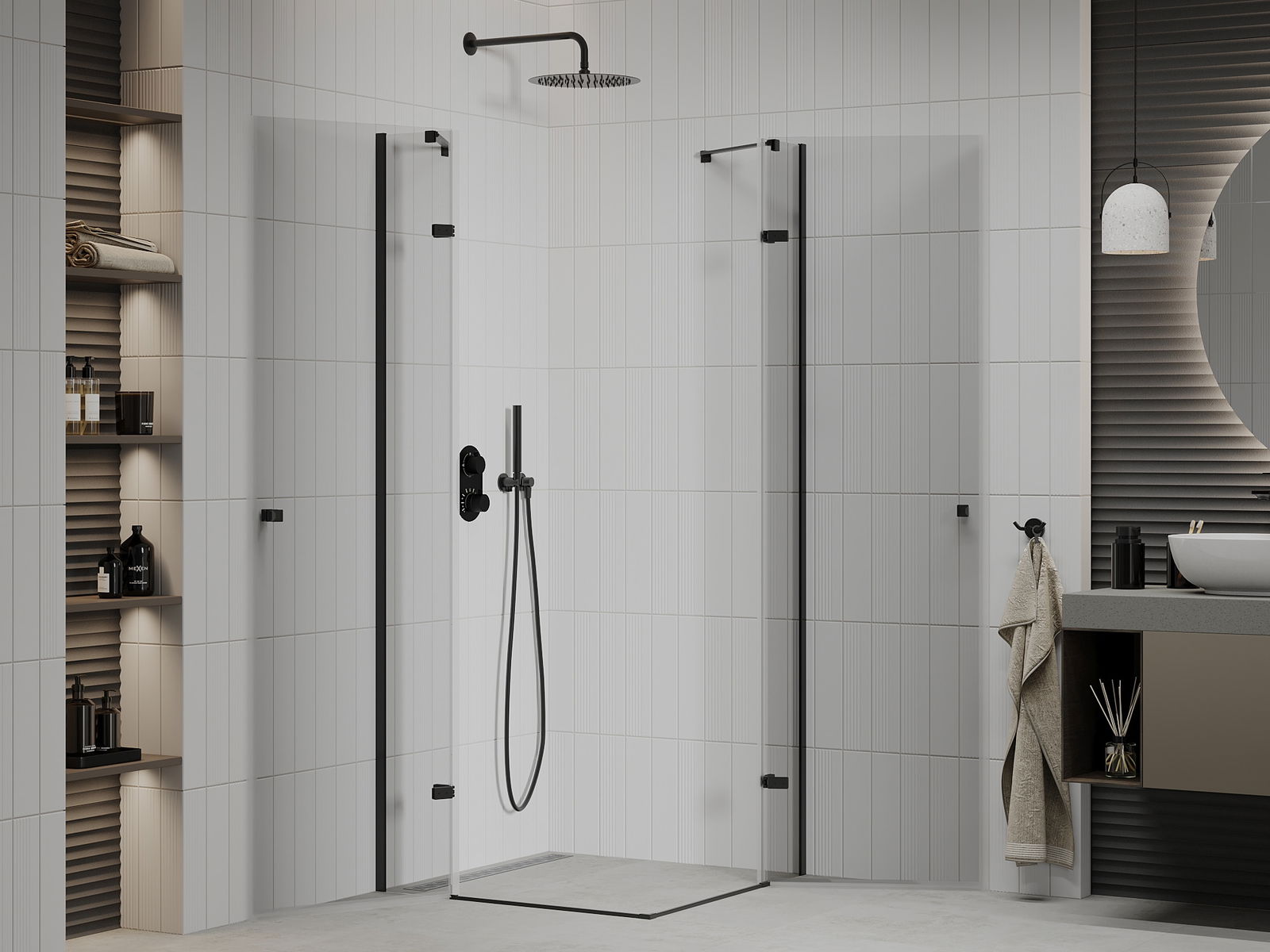Mexen Roma Duo nyíló zuhanykabin 80 x 80 cm, átlátszó, fekete - 854-080-080-70-00-02