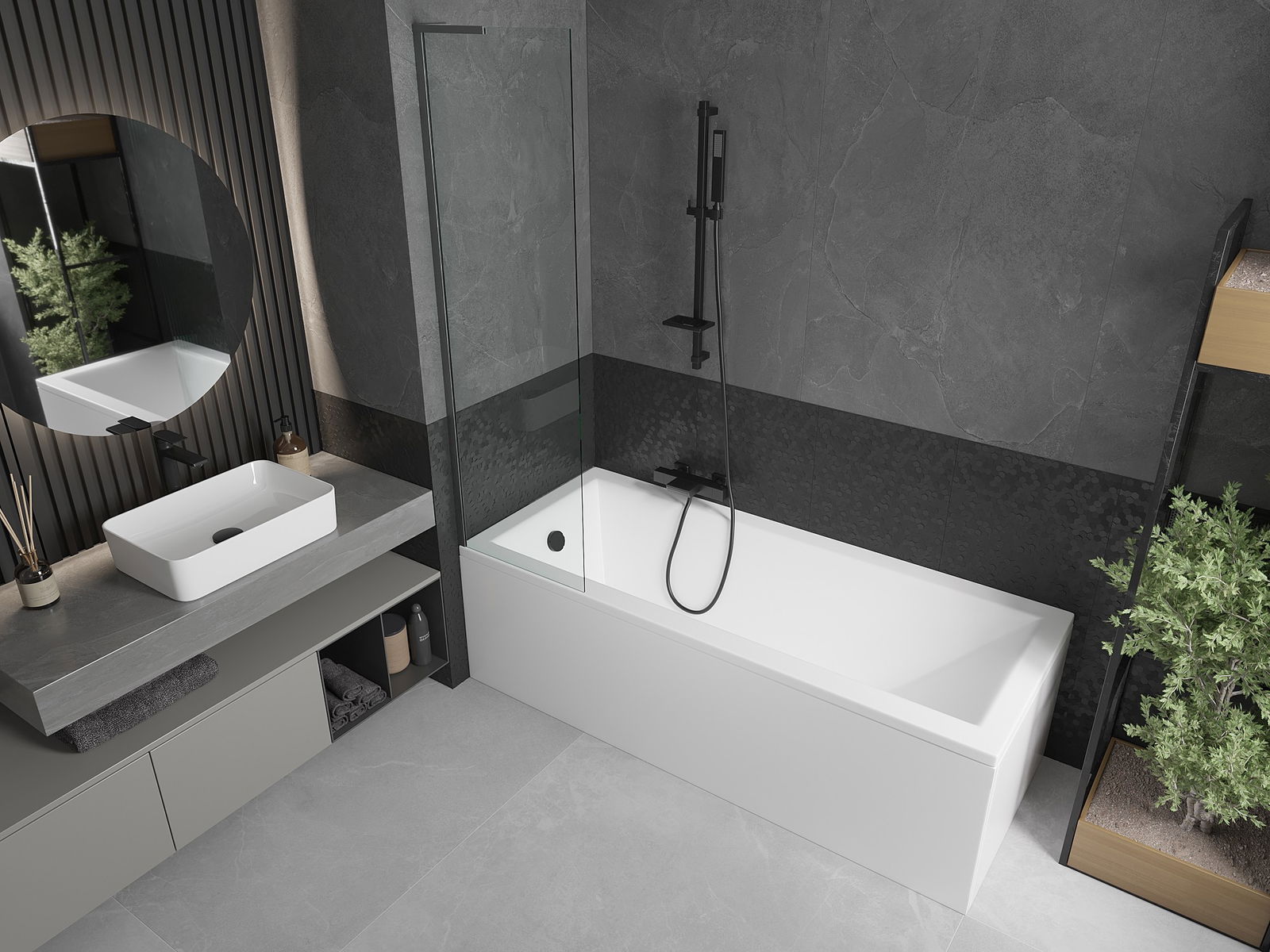 Az univerzális szerelőrendszer használatának köszönhetően a fürdőválaszfal jobb vagy bal oldalra is felszerelhető, attól függően, hogy mire van szükség. Ily módon könnyen megtervezheti a fürdőszobához igazított zuhanyzót.