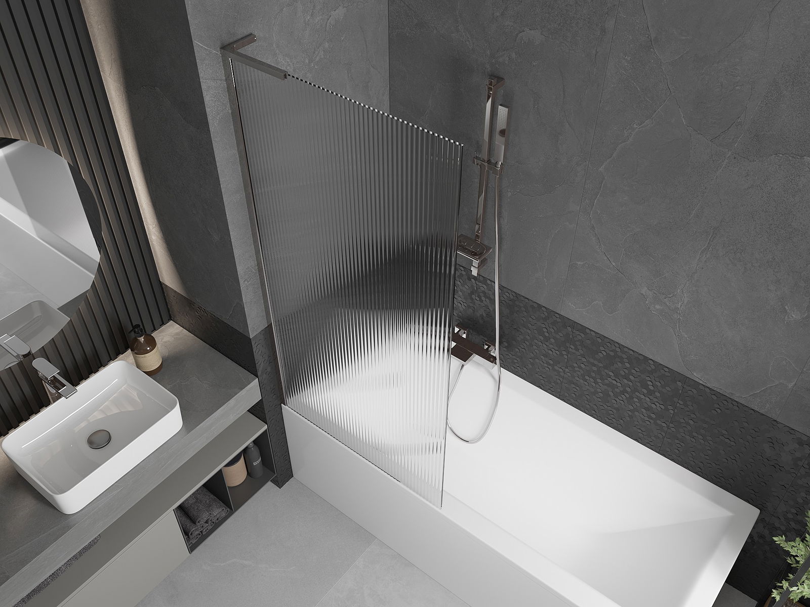 Hatékony védelem a víz kiömlése ellen a fürdés során. A paraván olyan tömítésekkel rendelkezik, amelyek tökéletesen illeszkednek az üveglaphoz és a kád pereméhez. Funkcionális megoldás, amely biztosítja a biztonságot és a könnyű tisztántartást.