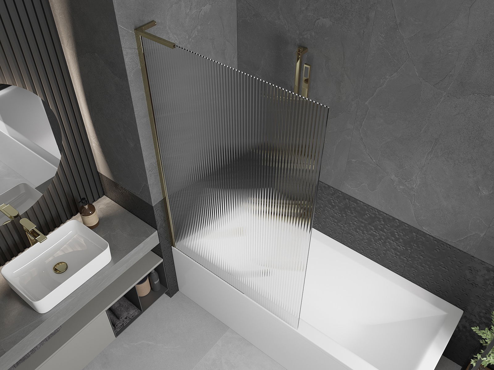 Mexen Next L egyajtós fürdőkádparaván 100 x 150 cm, csíkos, arany - 895-100-000-03-09-50