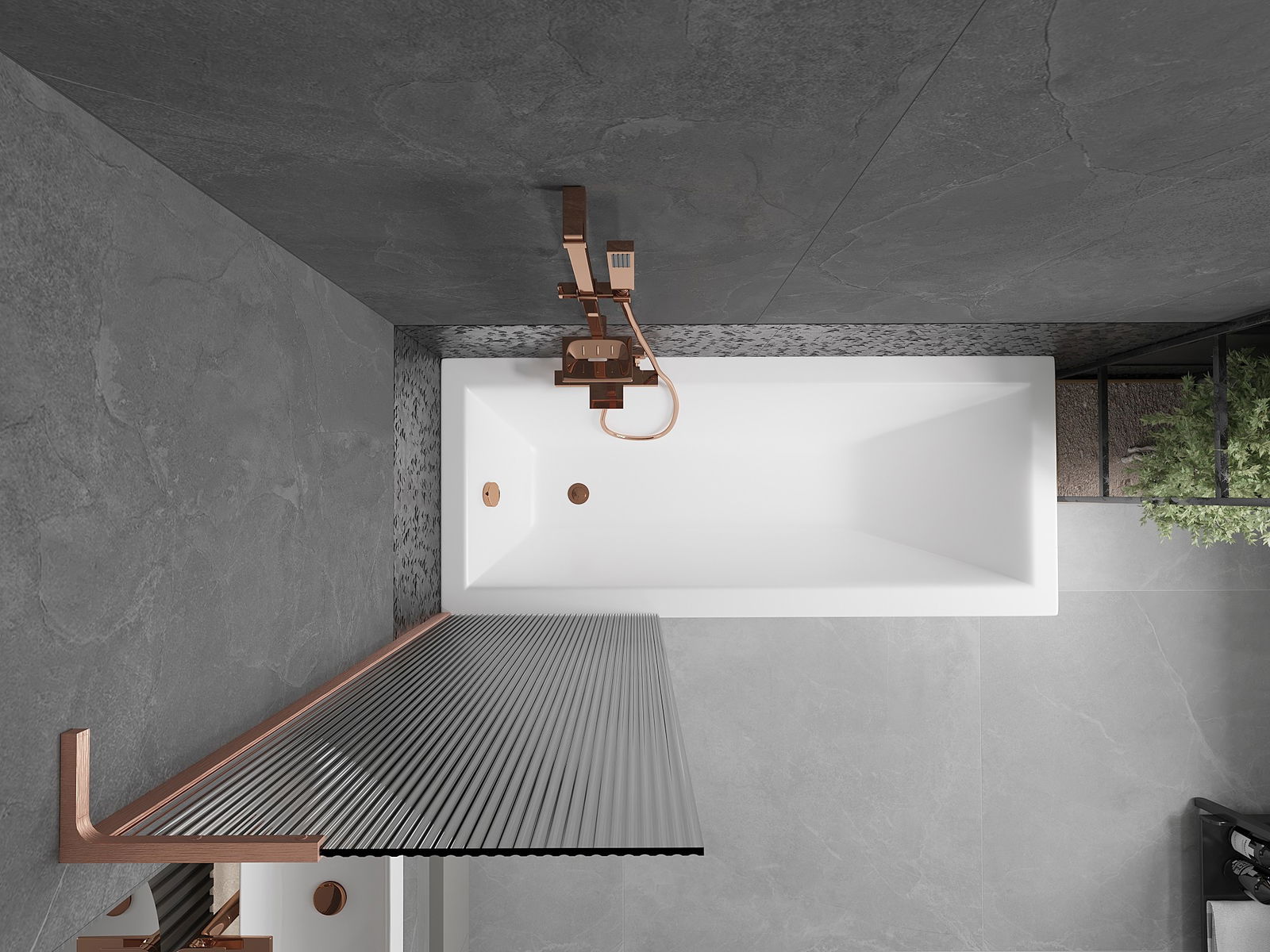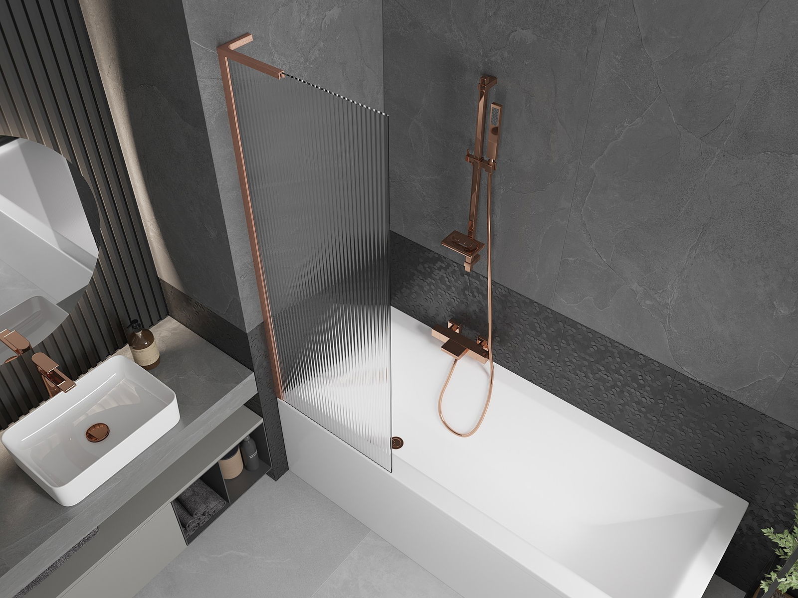 Mexen Next L 1-szárnyú fürdőszobai paraván 60 x 150 cm, csíkos, kefe-fényezésű réz - 895-060-000-03-09-65
