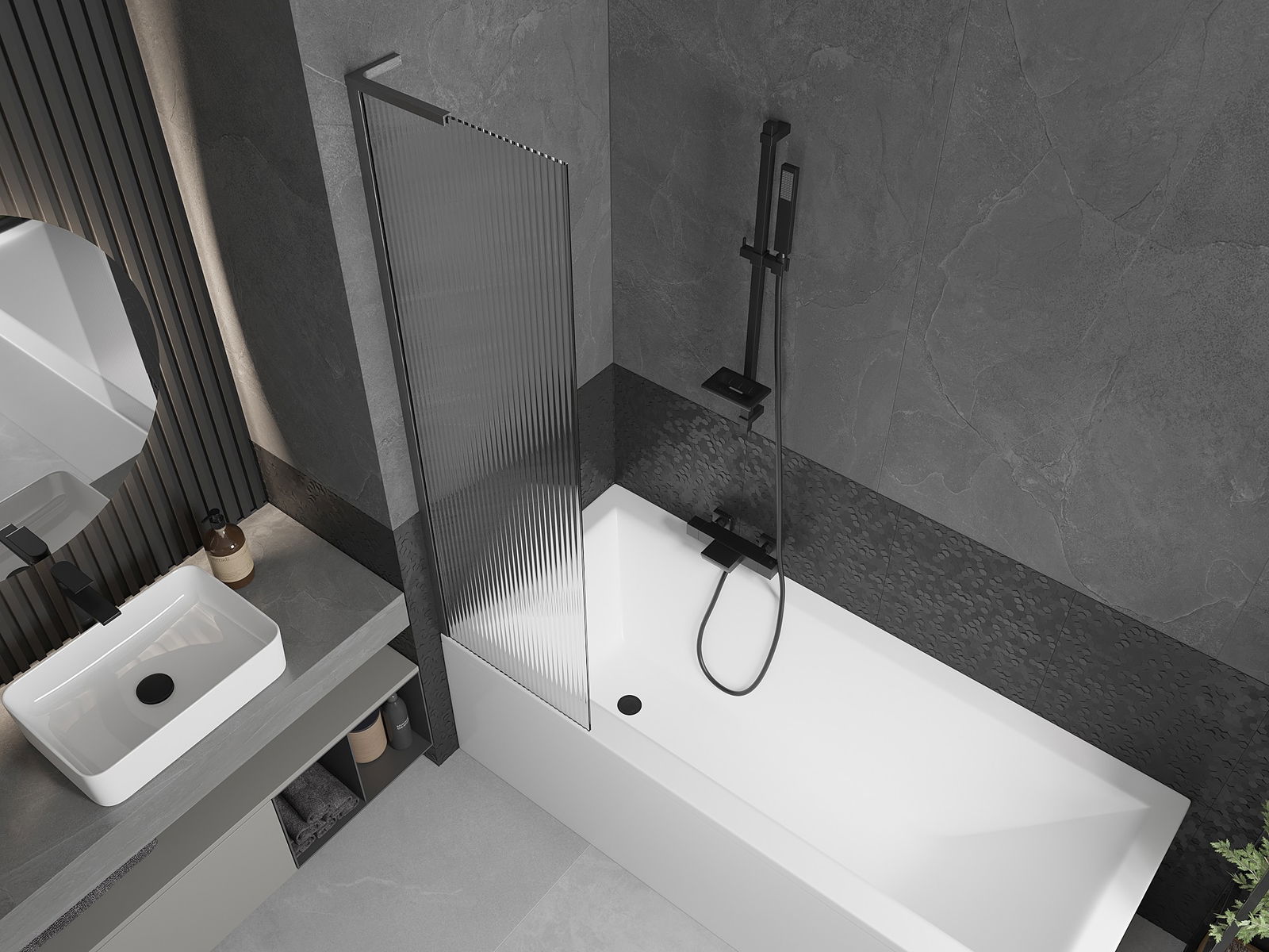 Mexen Next L egyoldalas kádparaván 1-szárnyú 50 x 150 cm, csíkos, gun gray kefélt - 895-050-000-03-09-66