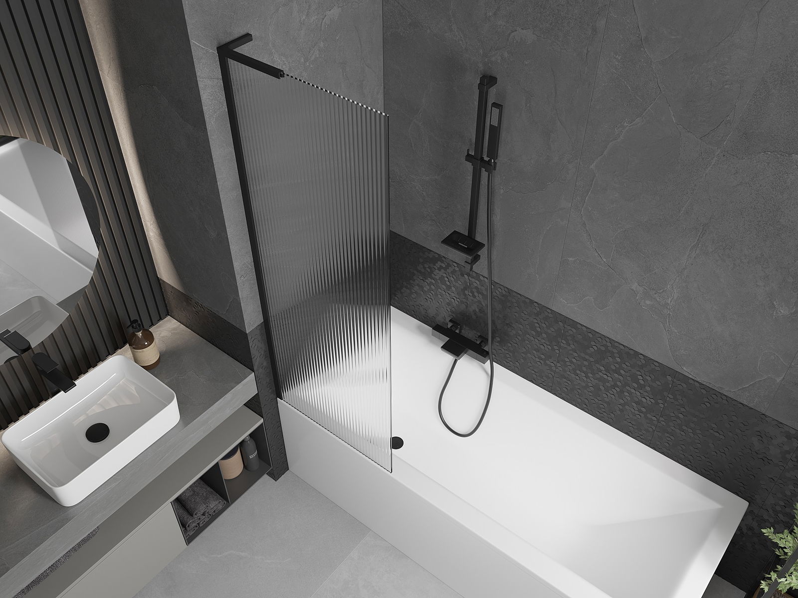 Mexen Next L fürdőkádparaván 1-szárnyú 60 x 150 cm, csíkos, fekete - 895-060-000-03-09-70