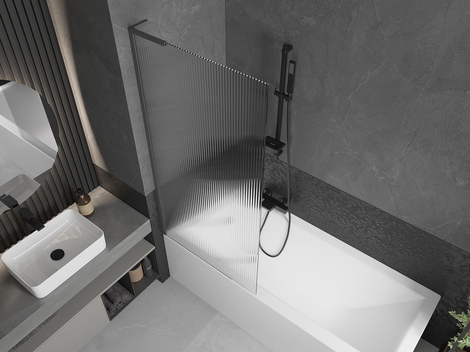 Mexen Next L fürdőkádfal 1-szárnyú 80 x 150 cm, csíkos, gun metal - 895-080-000-03-09-95