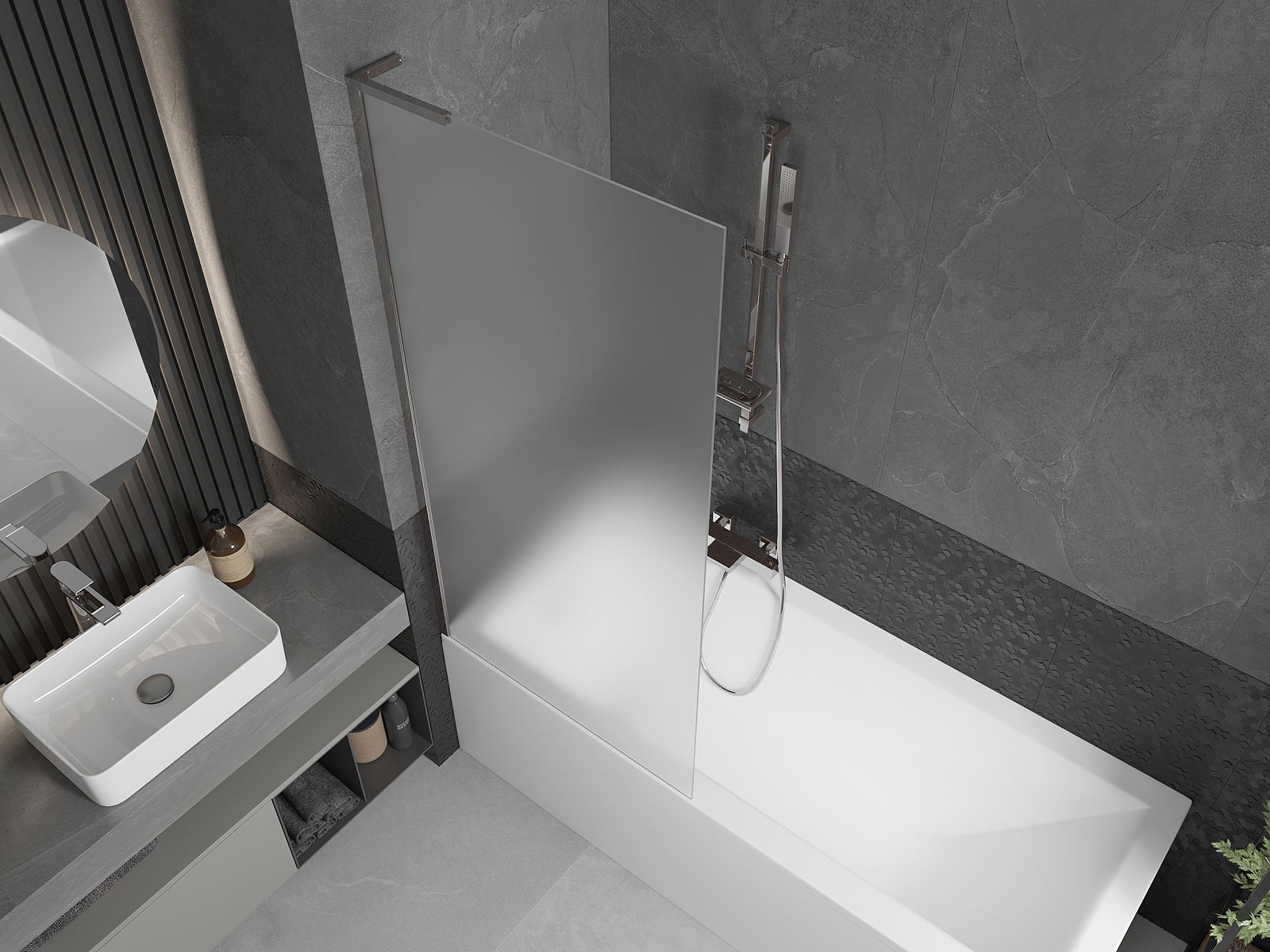 Hatékony védelem a víz kiömlése ellen a fürdés során. A paraván olyan tömítésekkel rendelkezik, amelyek tökéletesen illeszkednek az üveglaphoz és a kád pereméhez. Funkcionális megoldás, amely biztosítja a biztonságot és a könnyű tisztántartást.