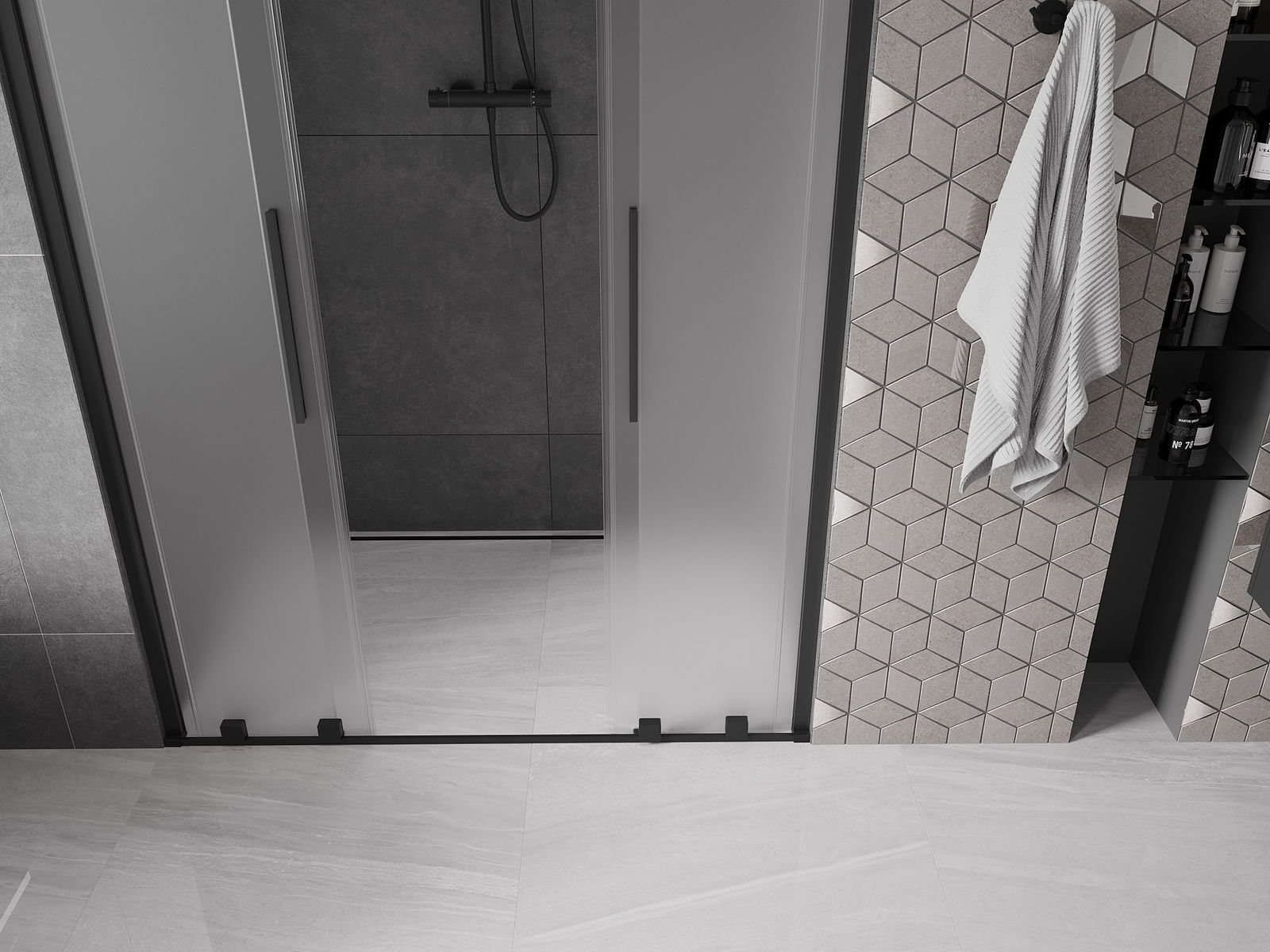Mexen Velar L Duo tolóajtós zuhanyajtó 140 cm, homályos, fekete - 871-140-003-32-70