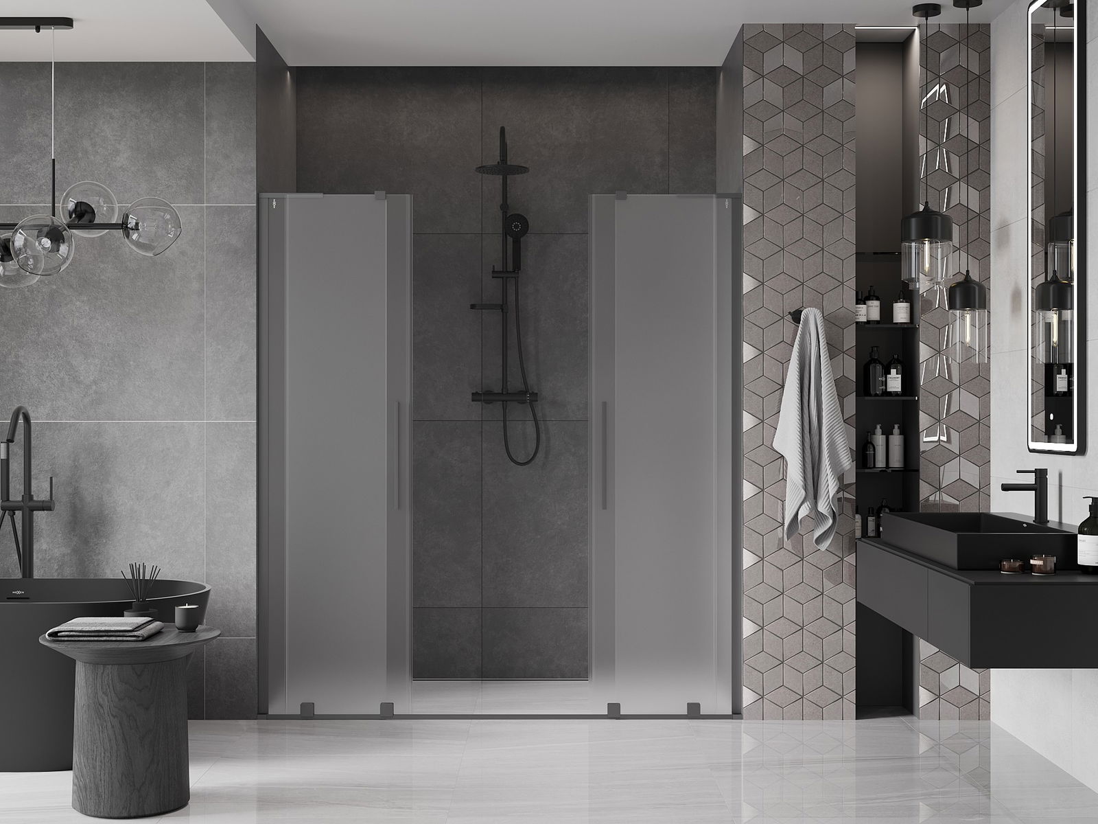 Mexen Velar L Duo toló zuhanyajtó 200 cm, matt, gun metal - 871-200-003-32-95