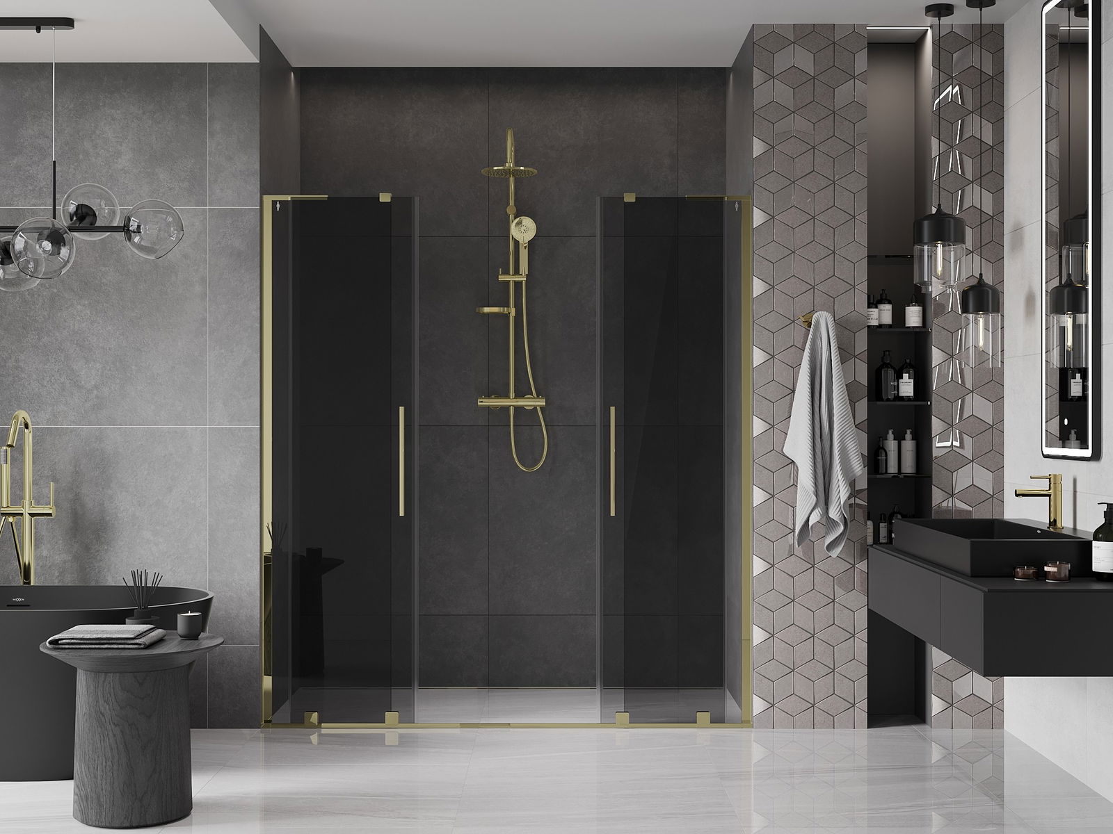 Mexen Velar L Duo 180 cm toló zuhanyajtó, grafit, arany - 871-180-003-42-50