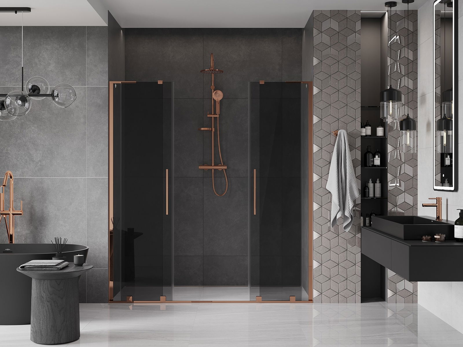 Mexen Velar L Duo tolóajtós zuhanykabin 180 cm, grafit, rózsaarany - 871-180-003-42-60