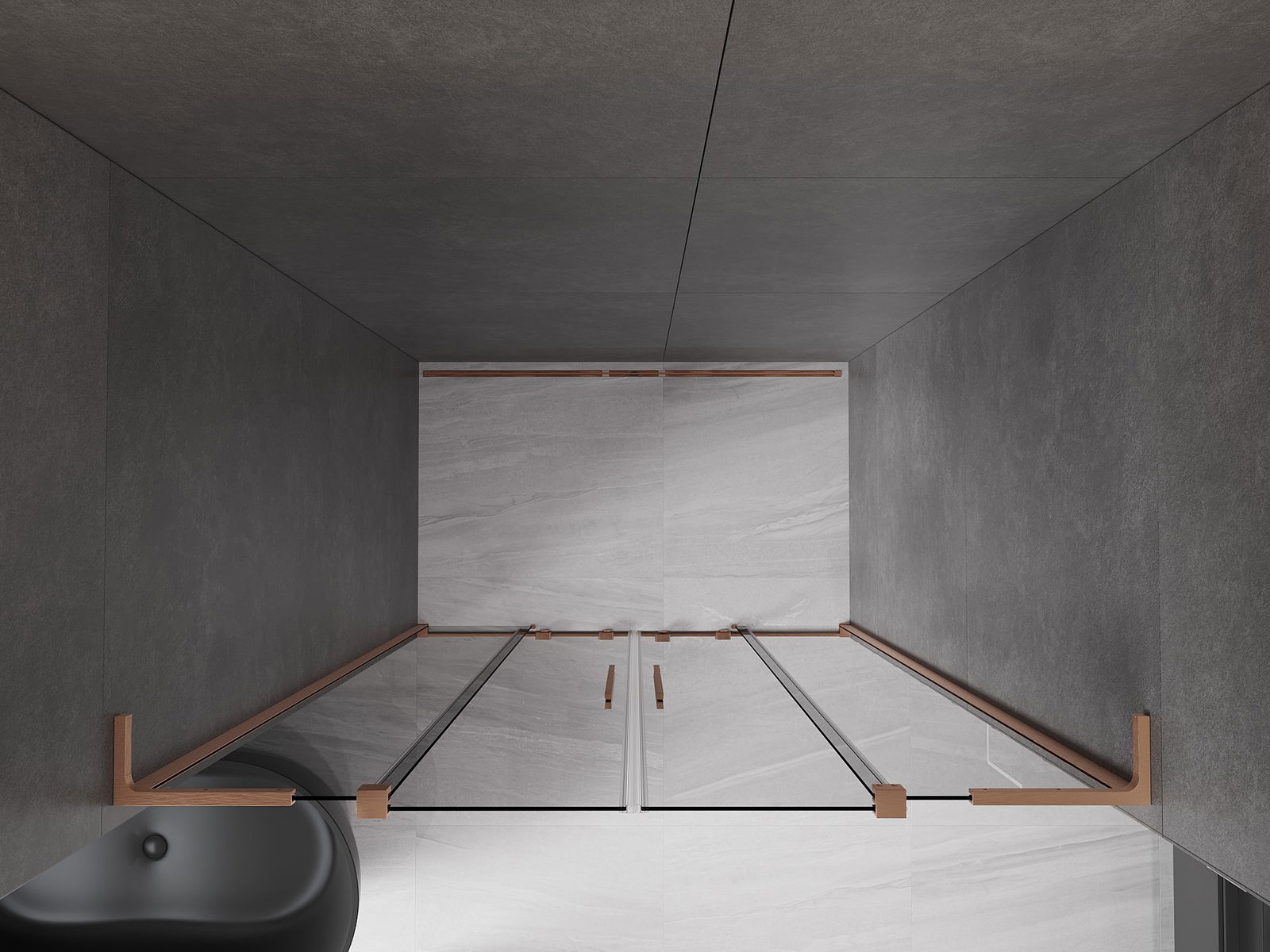 Mexen Velar L Duo tolózuhany ajtó 150 cm, grafit, csiszolt réz - 871-150-003-42-65