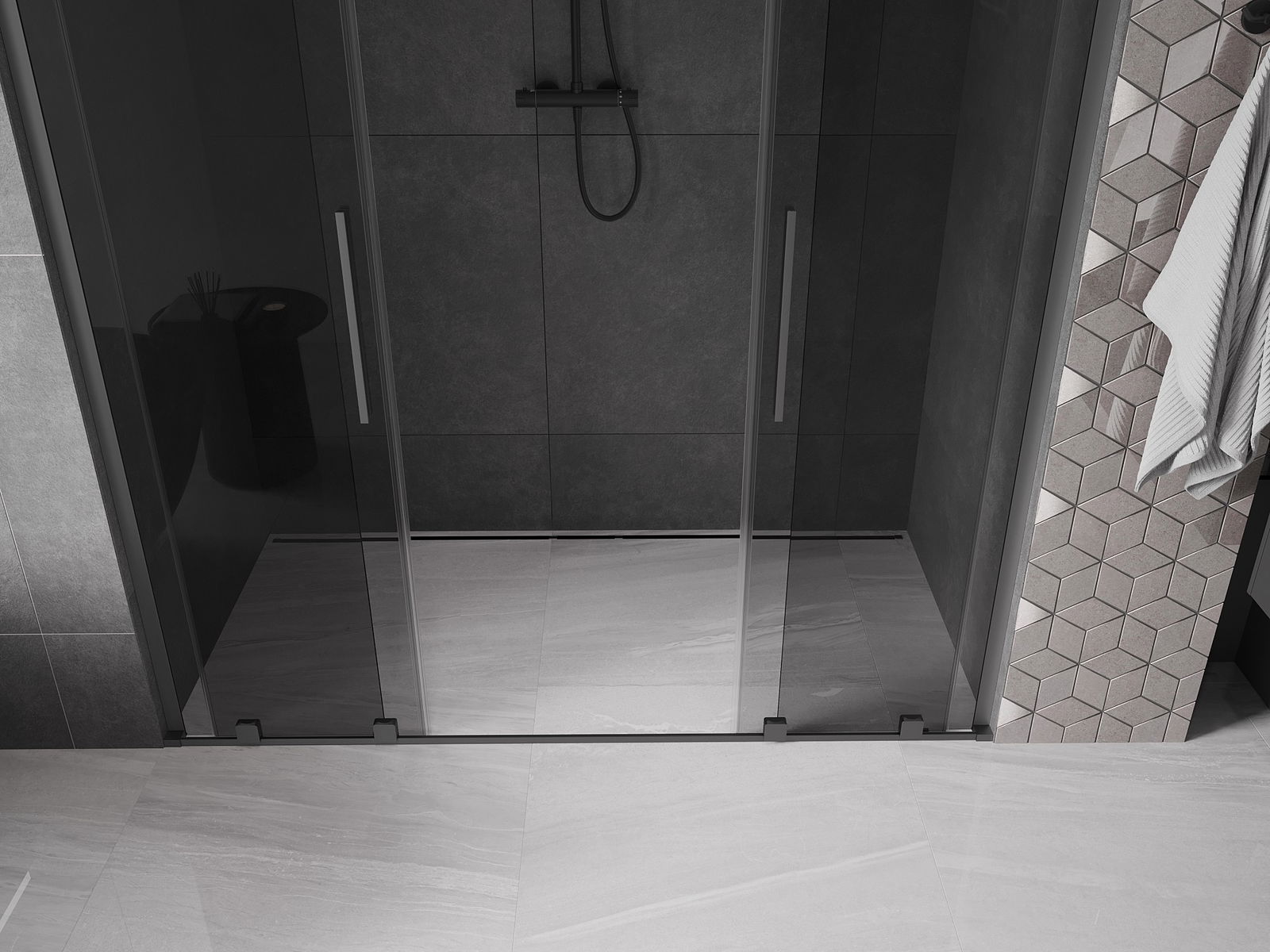 Mexen Velar L Duo zuhanyajtó tolóajtó 180 cm, grafit, gun metal - 871-180-003-42-95