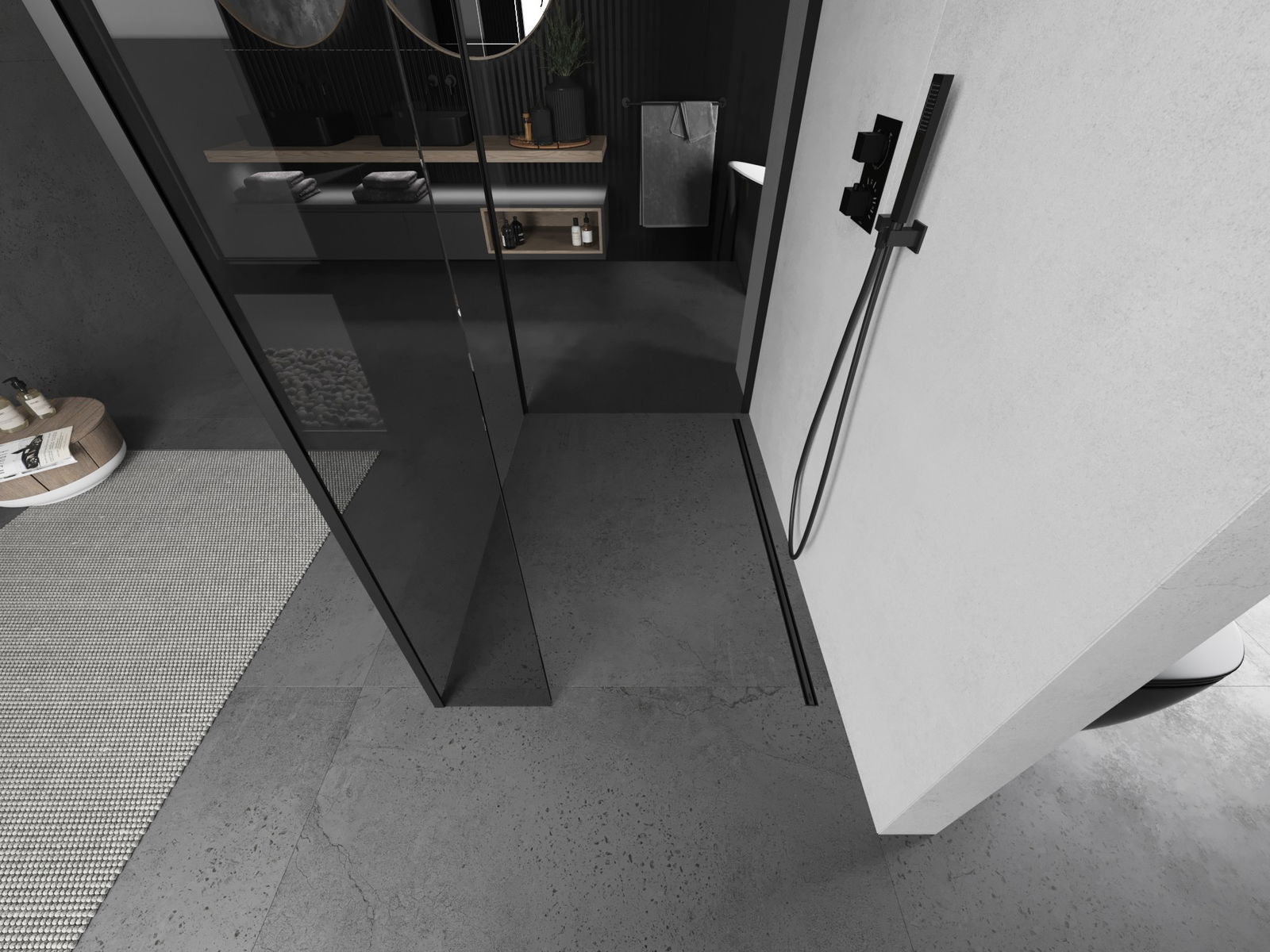 Mexen Kioto zuhanyfal Walk-in 110 x 85 x 40 cm, átlátszó, fekete - 800-110-085-221-70-00-040