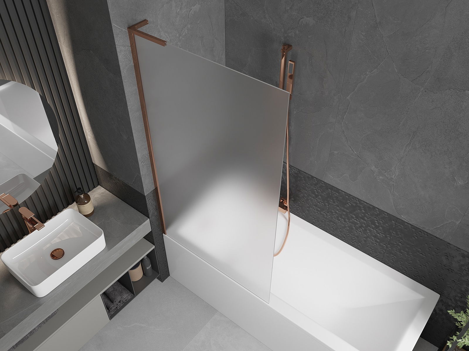 Mexen Next L fürdőkád paraván, 1-szárnyú, 90 x 150 cm, zúzmara, rózsaarany - 895-090-000-03-30-60