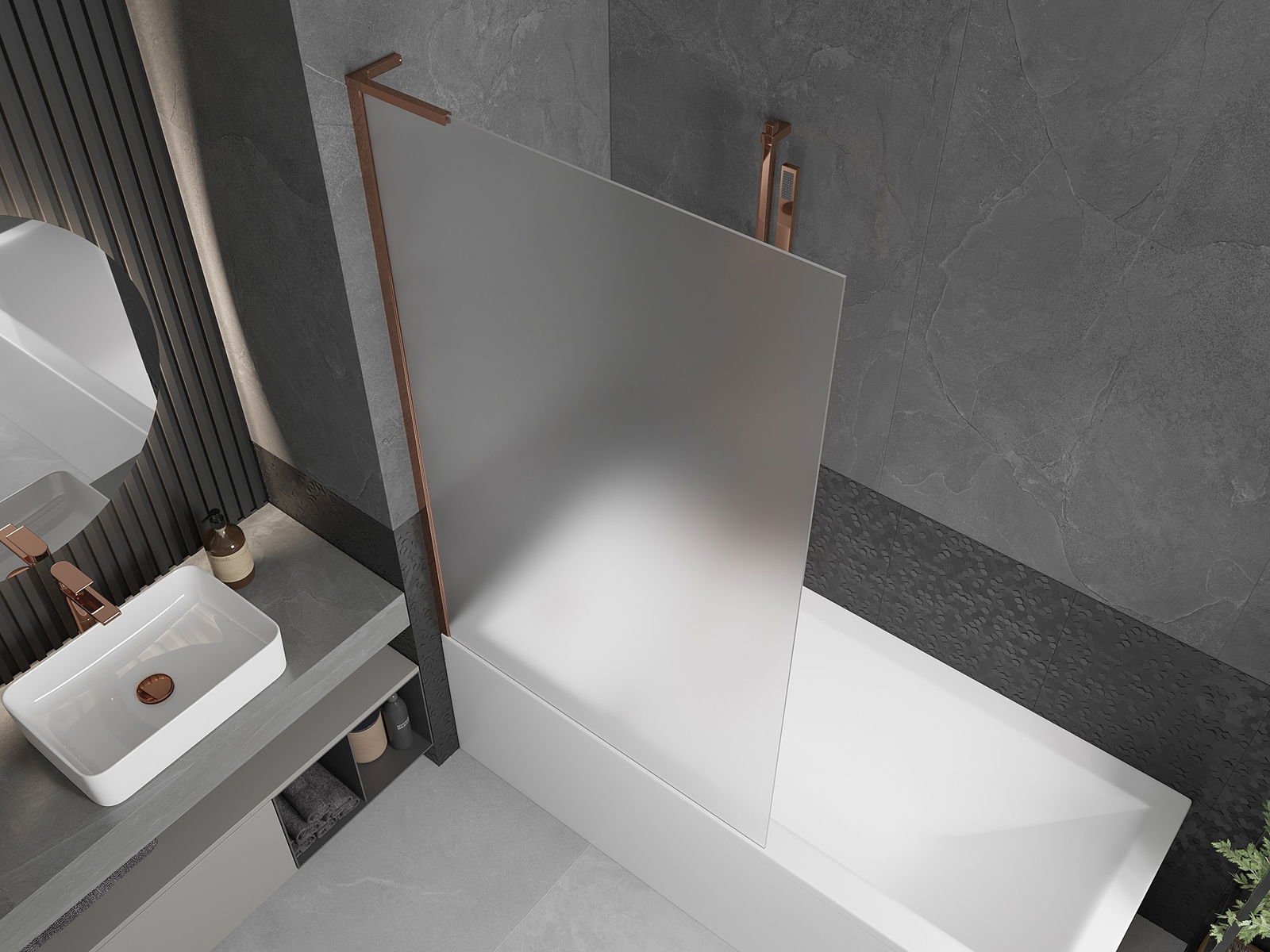 Mexen Next L egyrészes fürdőkádfal 1-ajtós 100 x 150 cm, fagyos, rózsaarany - 895-100-000-03-30-60