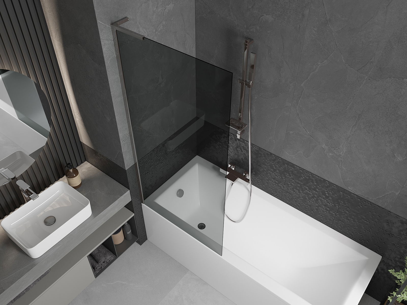 Mexen Next L kádparaván 1-szárnyú 80 x 150 cm, grafit, króm - 895-080-000-03-40-01