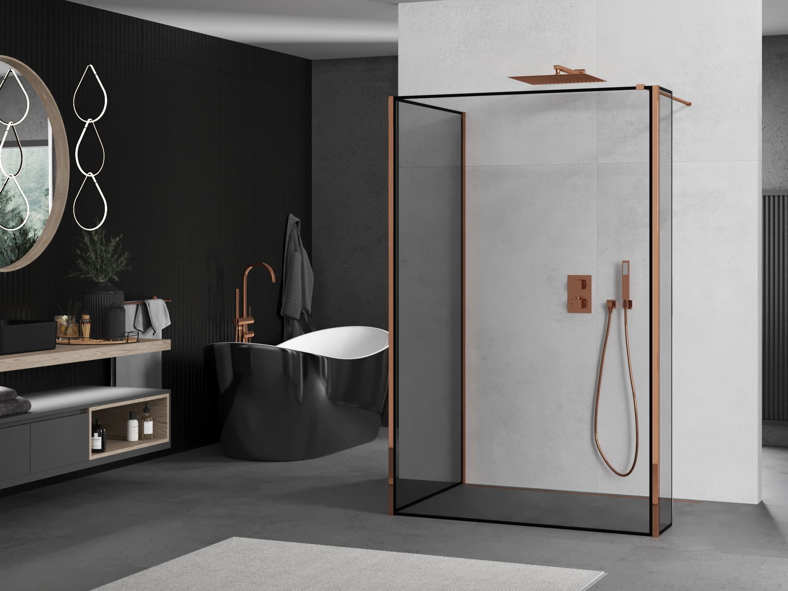 Mexen Kioto zuhanyfal Walk-in 130 x 110 x 40 cm, fekete keret, rózsaszín arany - 800-130-110-221-60-70-040