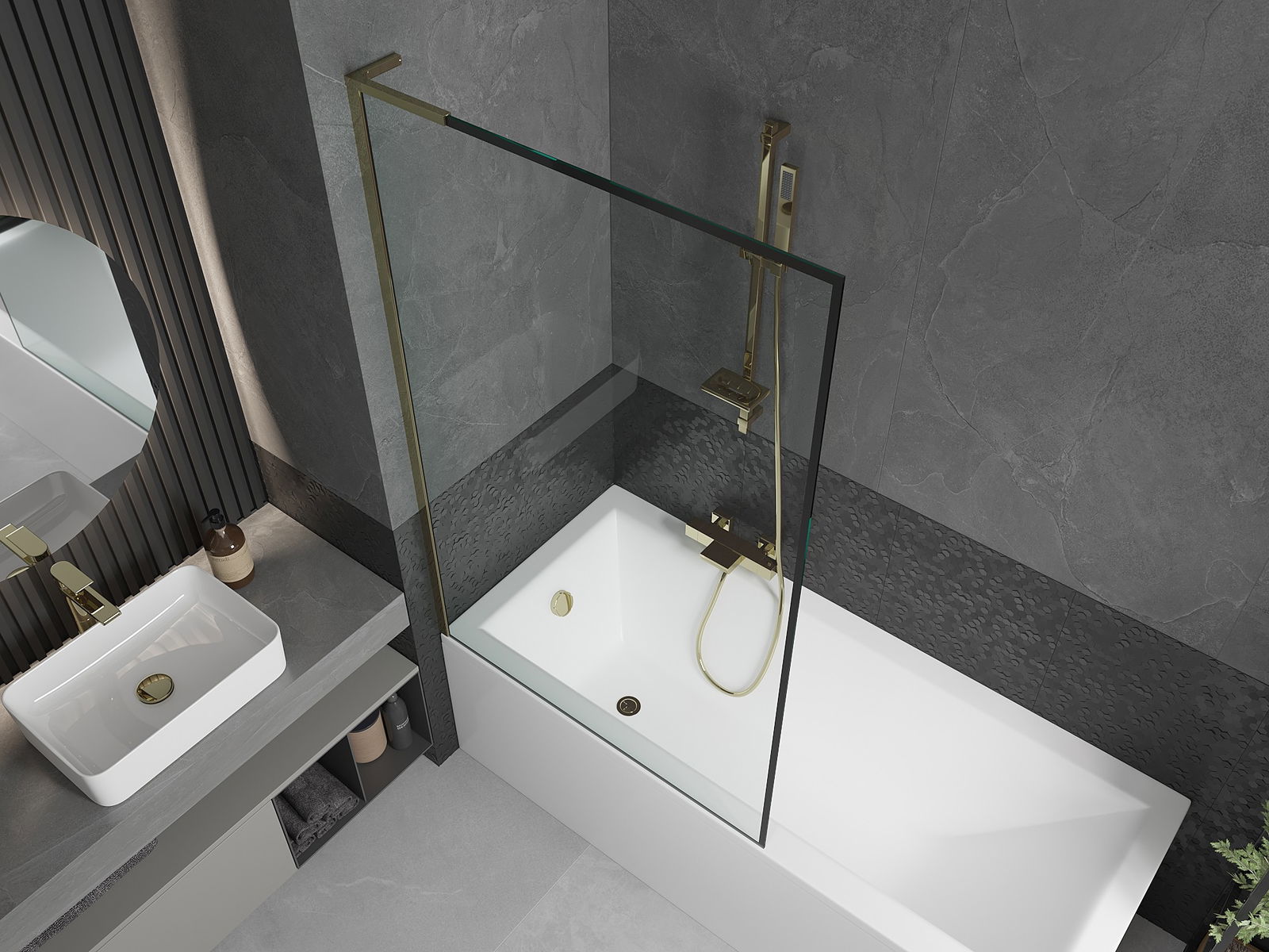 Mexen Next L fürdőkádparaván 1-szárnyú 100 x 150 cm, fekete keret, arany - 895-100-000-03-70-50